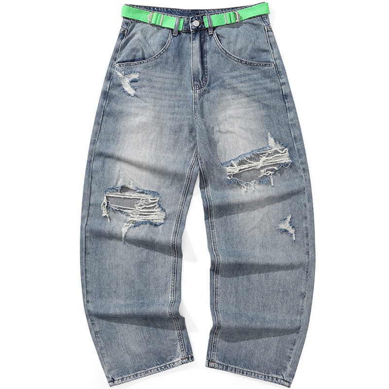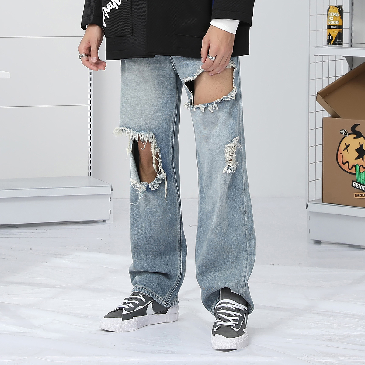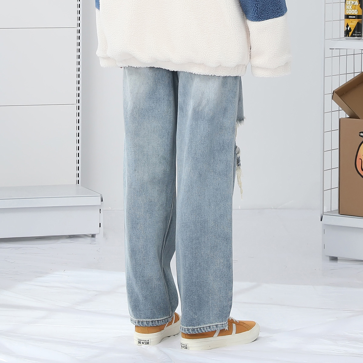 GENANX闪电潮牌水洗破洞直筒牛仔裤男女裤子秋冬新款时尚潮流裤子