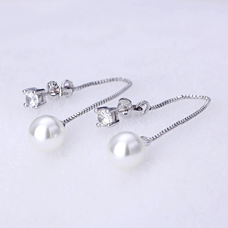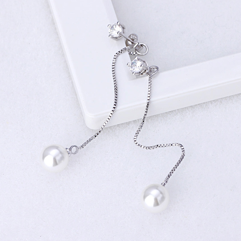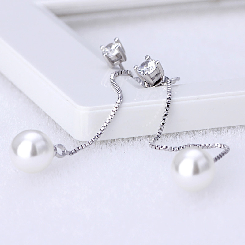 韩国潮流网红时尚气质925纯银长款防过敏珍珠耳链耳线女耳坠耳环