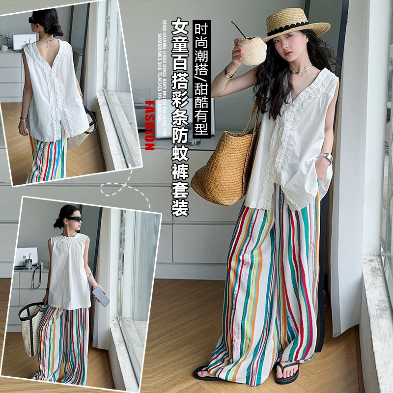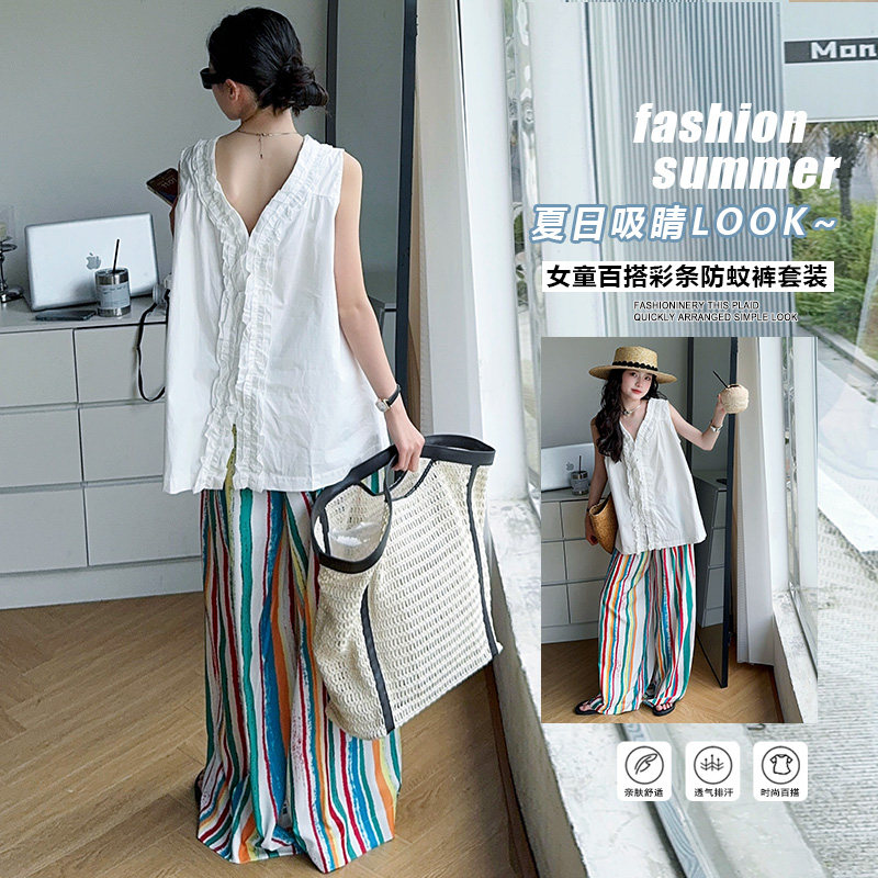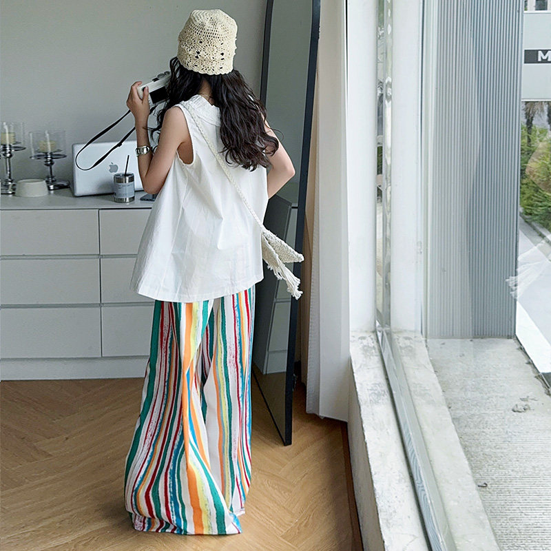 女童夏装套装2025新款韩版洋气儿童短袖阔腿裤女大童时髦两件套潮