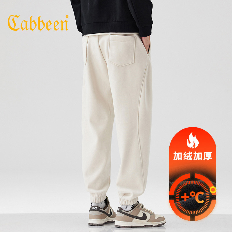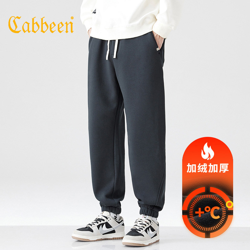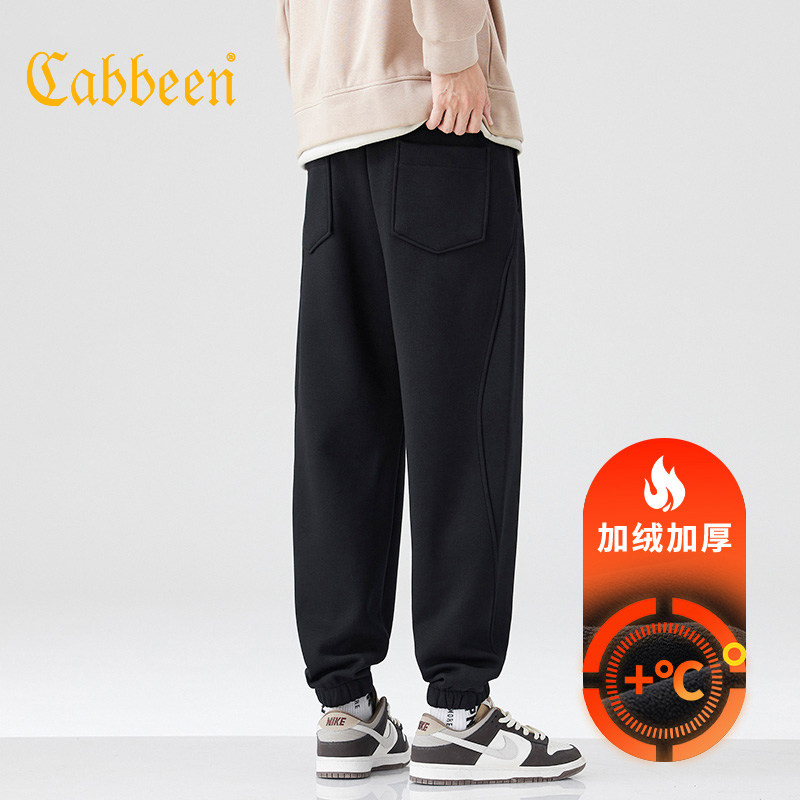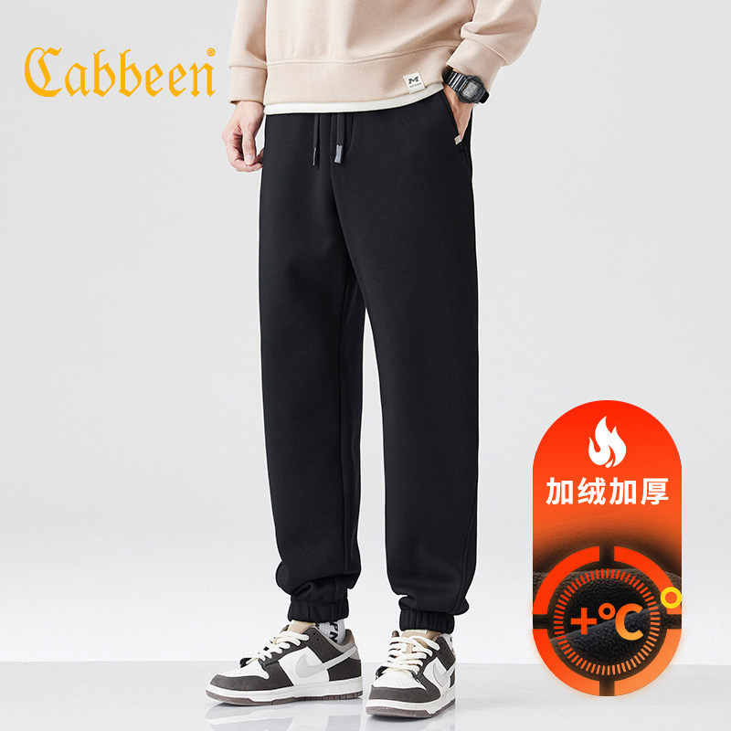 卡宾冬季加绒束脚休闲裤男宽松2025新款秋冬加厚宽松抽绳黑色卫裤