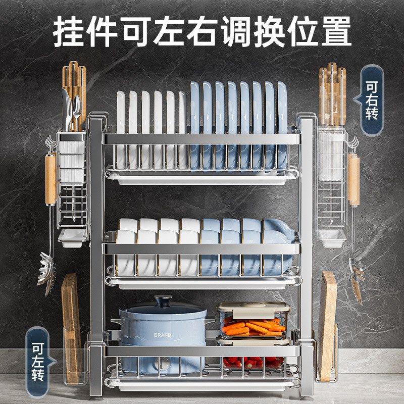 厨房304不锈钢置物架碗碟碗盘沥水架家用大容量台面厨具收纳架