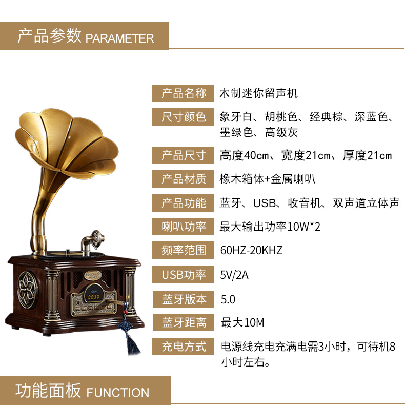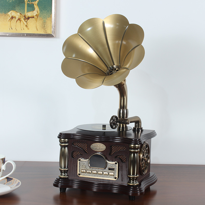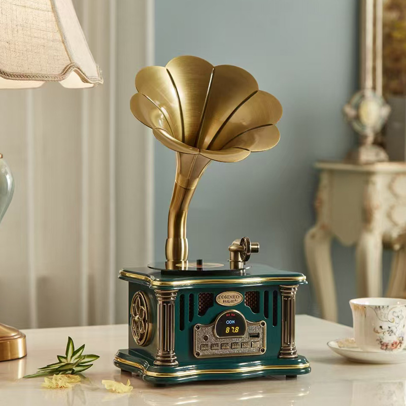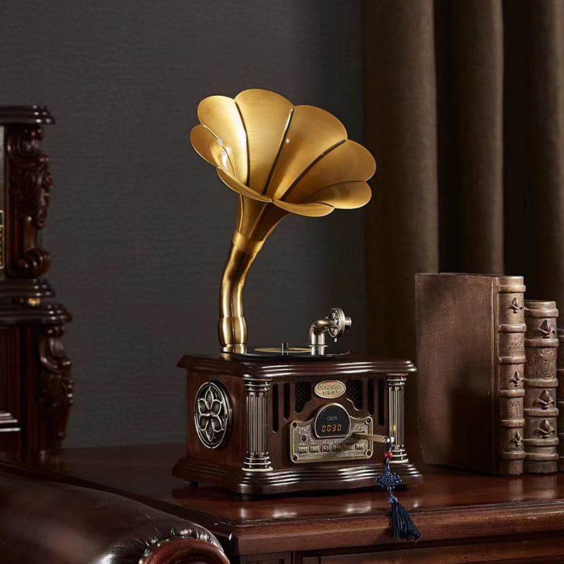 欧蒂诺高档复古蓝牙木制留声机欧美老式喇叭音响创意客厅送礼摆件