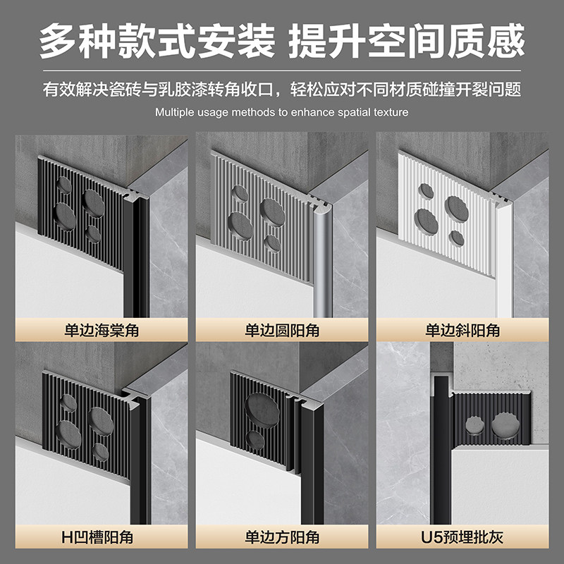 铝合金金属阳角线瓷砖收口批灰款