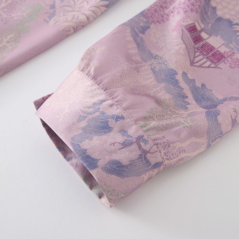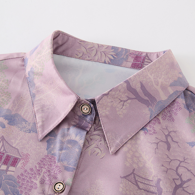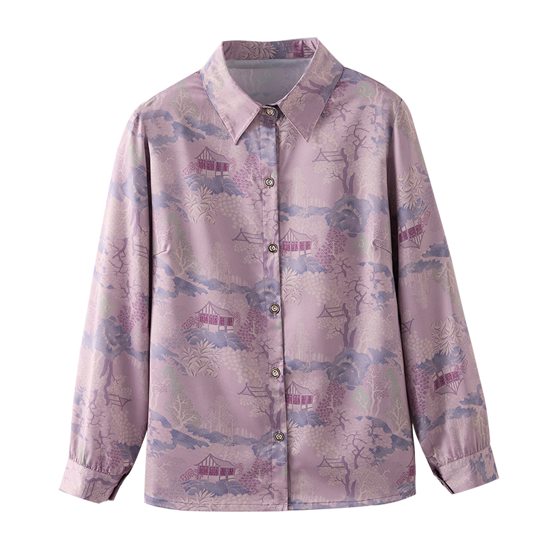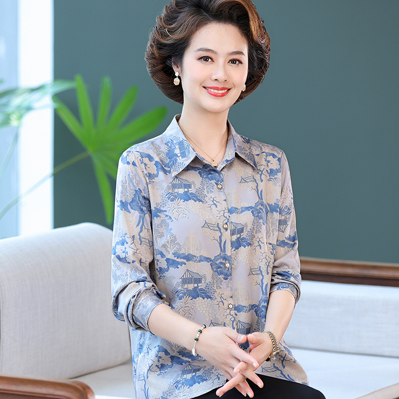 妈妈春夏装长袖真丝衬衫中老年女装大码洋气桑蚕丝衬衣老太太套装