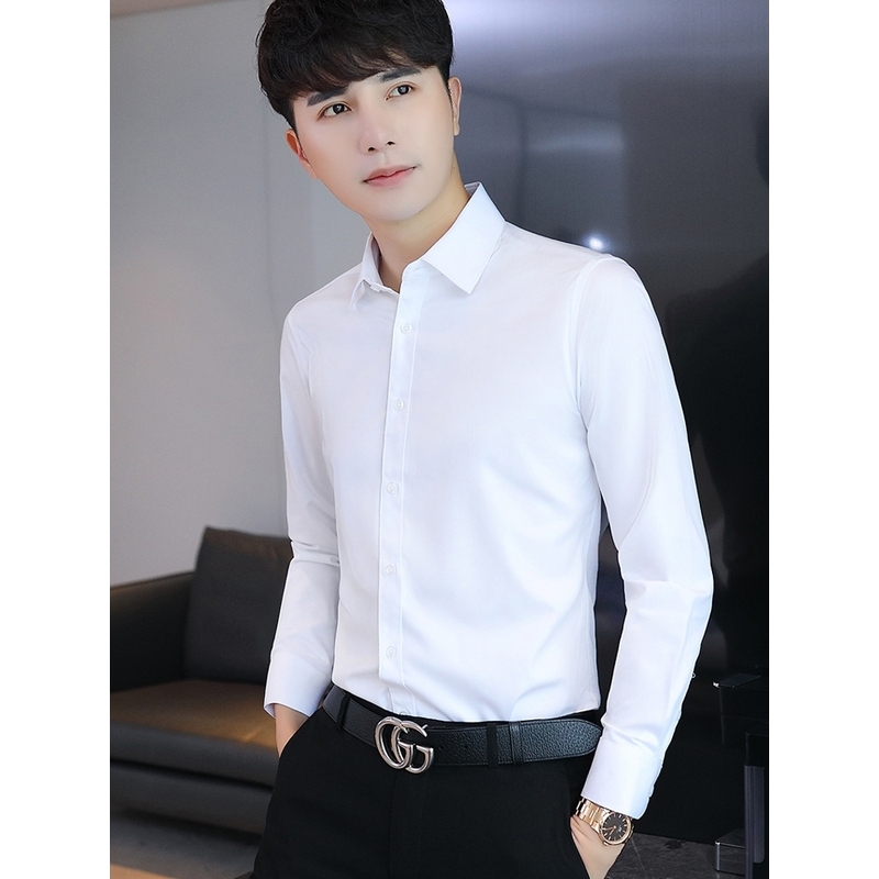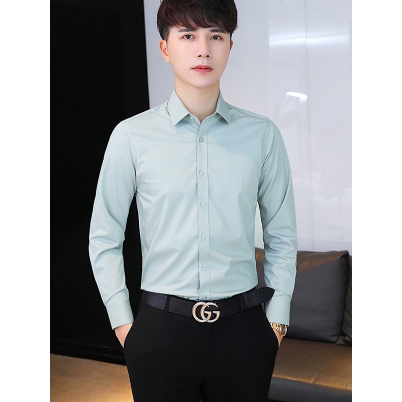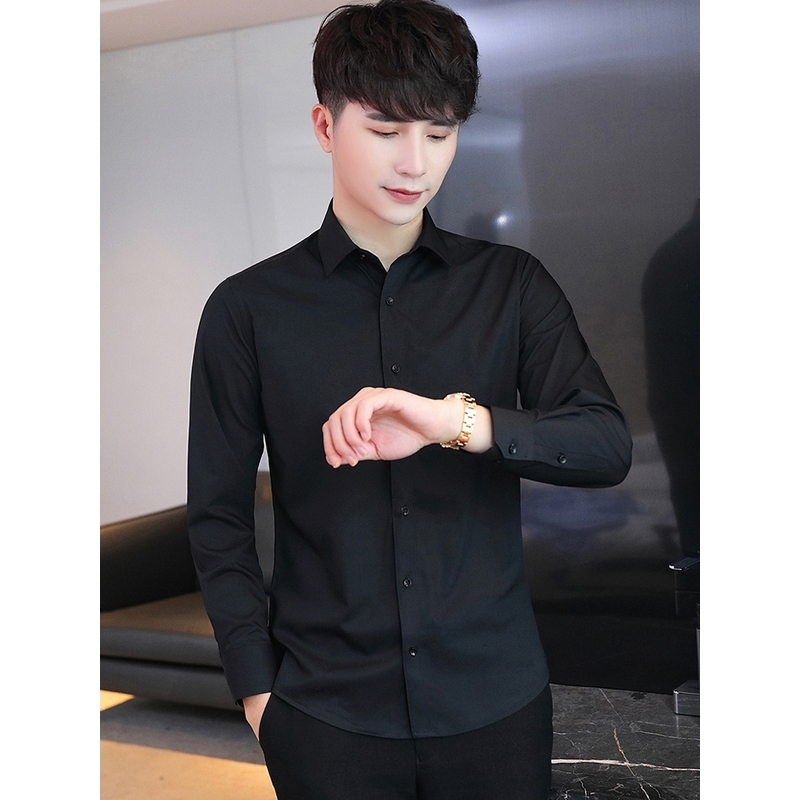 商务长袖衬衫男士春秋新款修身休闲职业弹力衬衣高级感男装上衣服