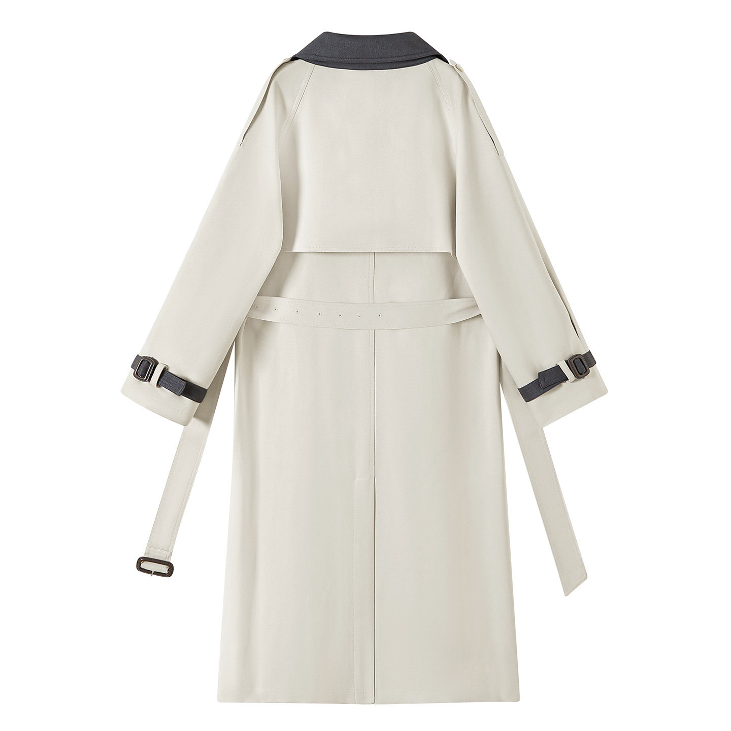 她池中长款风衣2026春装新款女装撞色拼接插肩袖双排扣过膝外套