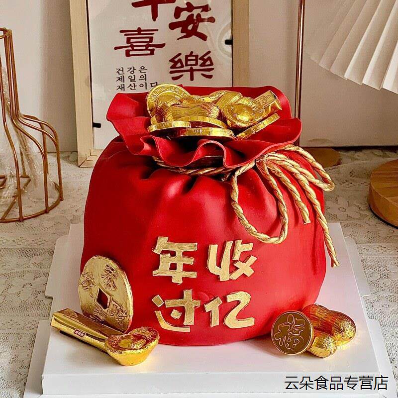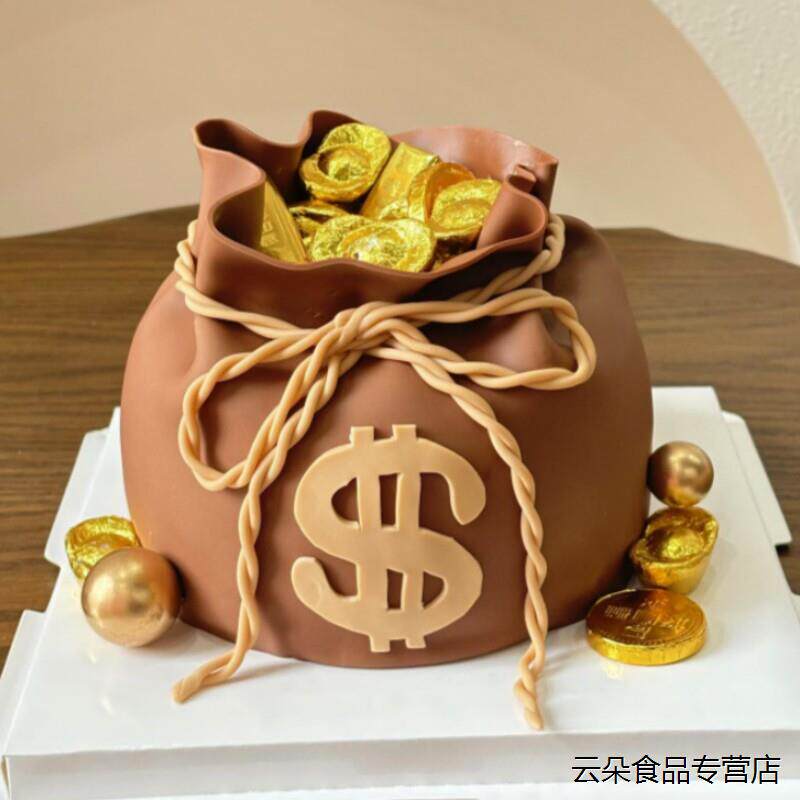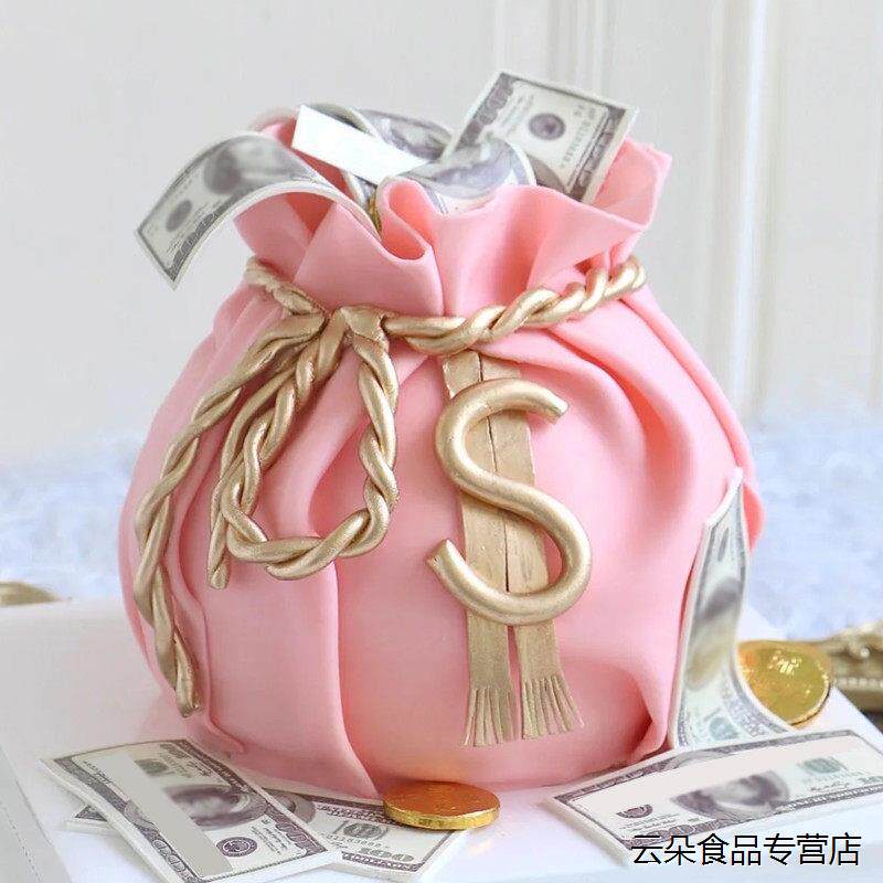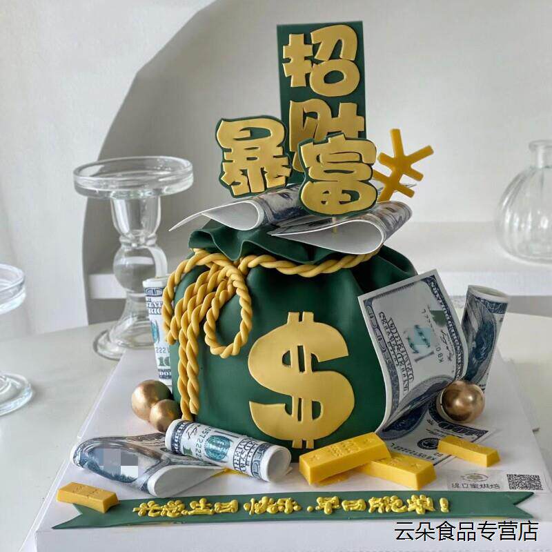 暴富钱袋子生日蛋糕招财定制创意翻糖男女生爸爸上海同城配送全国