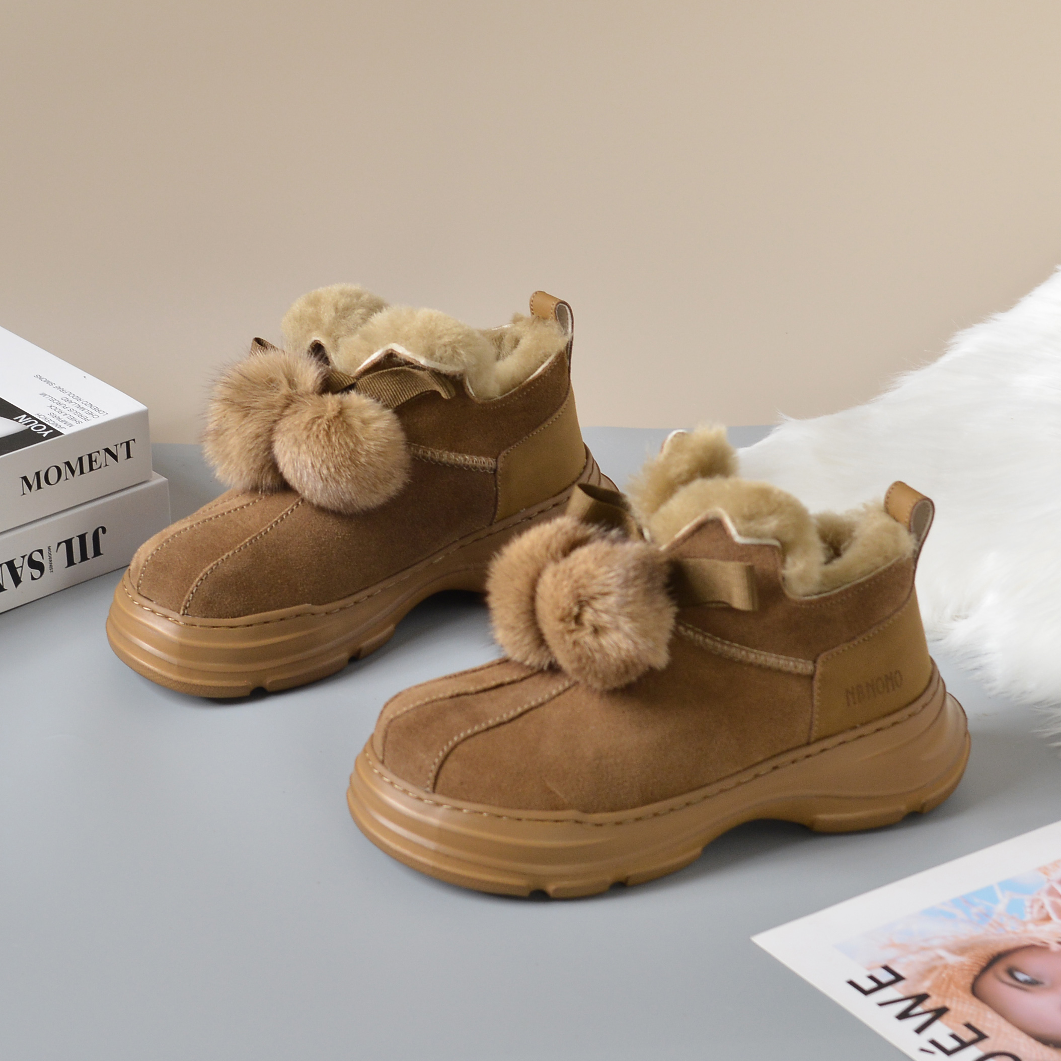 毛球时尚皮毛一体雪地靴女短靴2025新款冬季纯羊毛加绒加厚大棉鞋