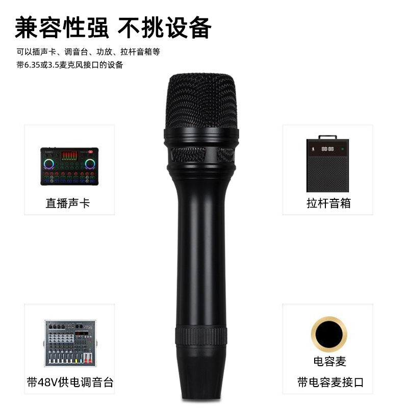 有线电容麦克风唱歌专用直播声卡话筒5V通用48V录音电脑K歌手持