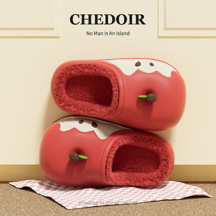 chedoir猜岛防水苹果棉拖鞋女款冬季半包跟可爱ins宿舍女生毛拖鞋