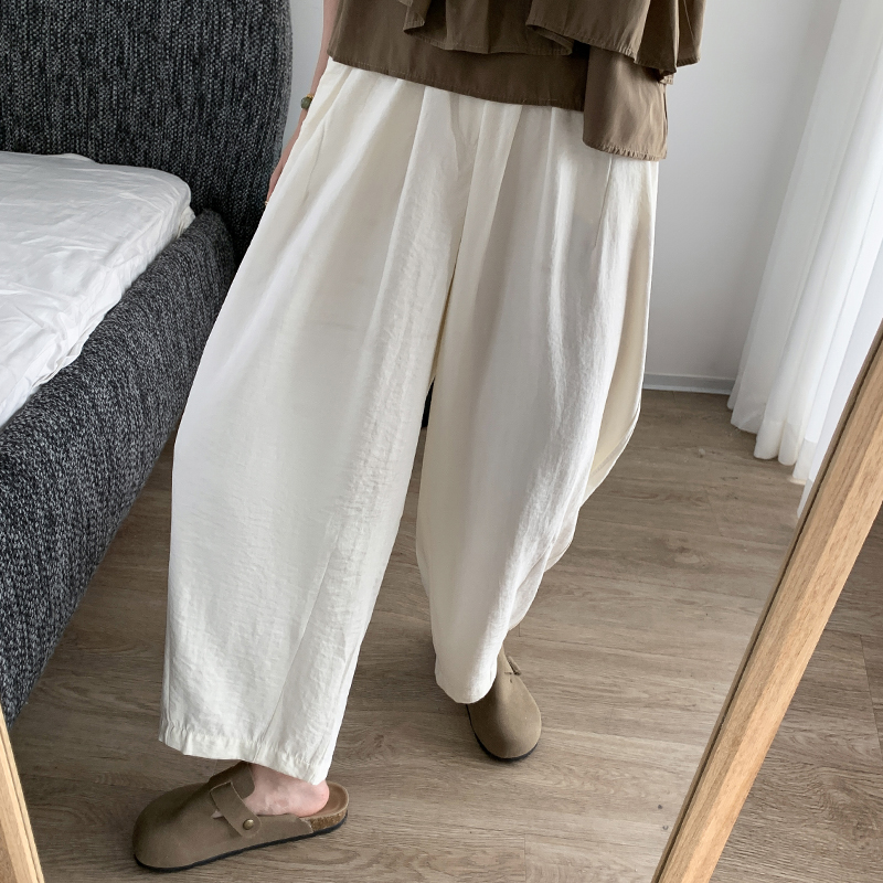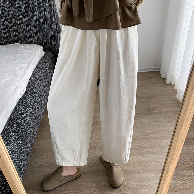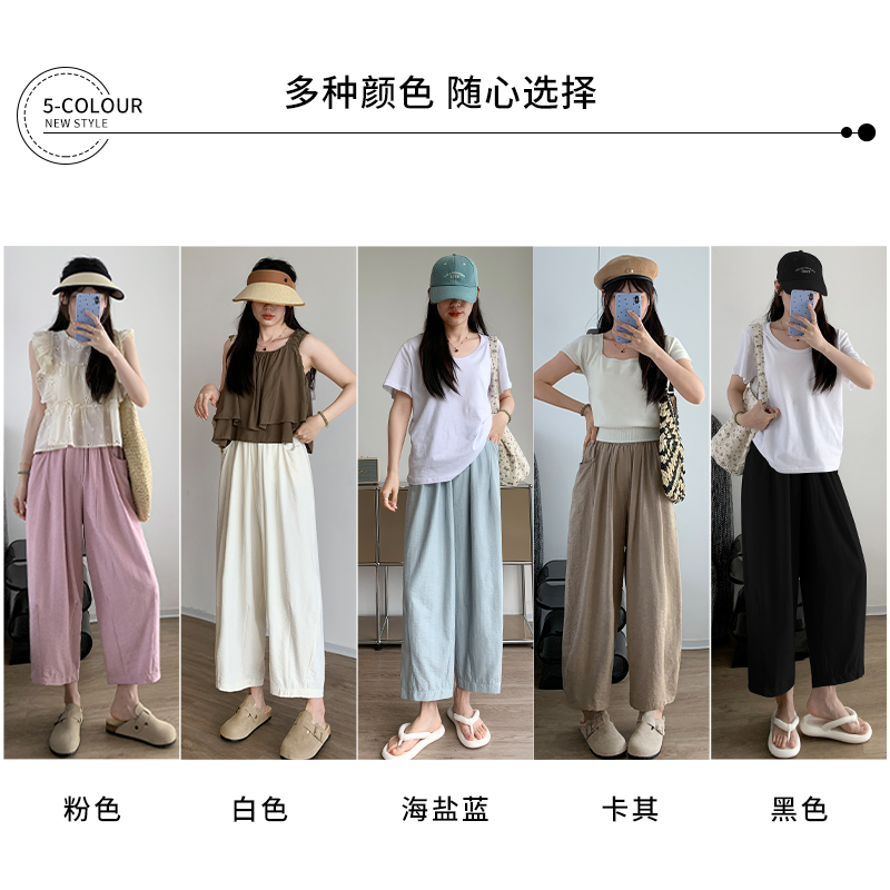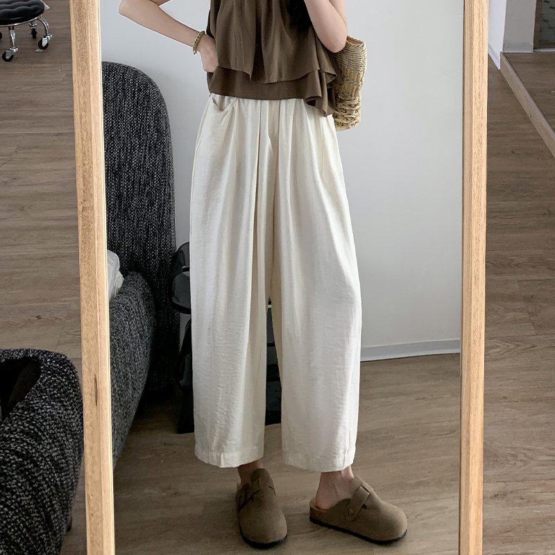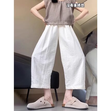 白色冰丝奶奶裤女夏季2024新款九分阔腿凉凉裤小个子萝卜哈伦裤子