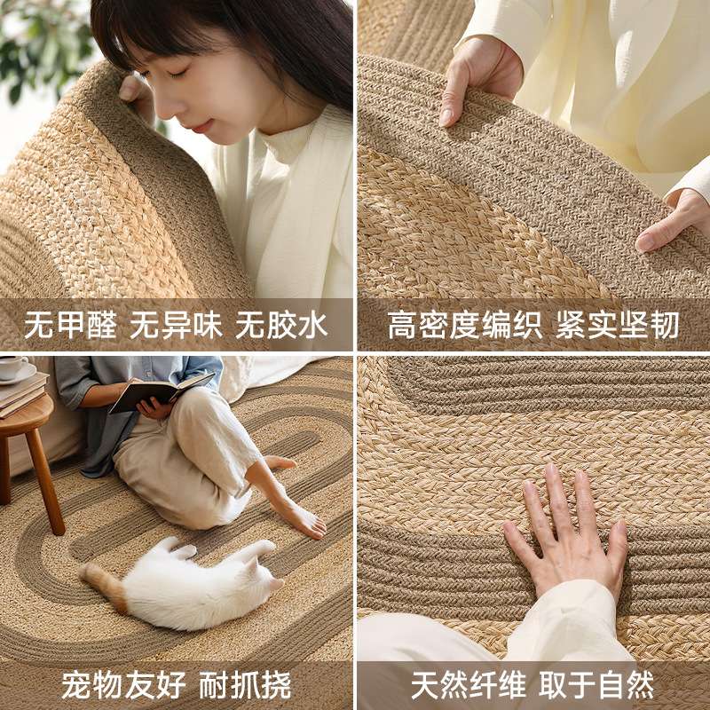 侘寂风榻榻米黄麻地毯手工编制日式简约茶几泡茶地毯地垫客厅卧室