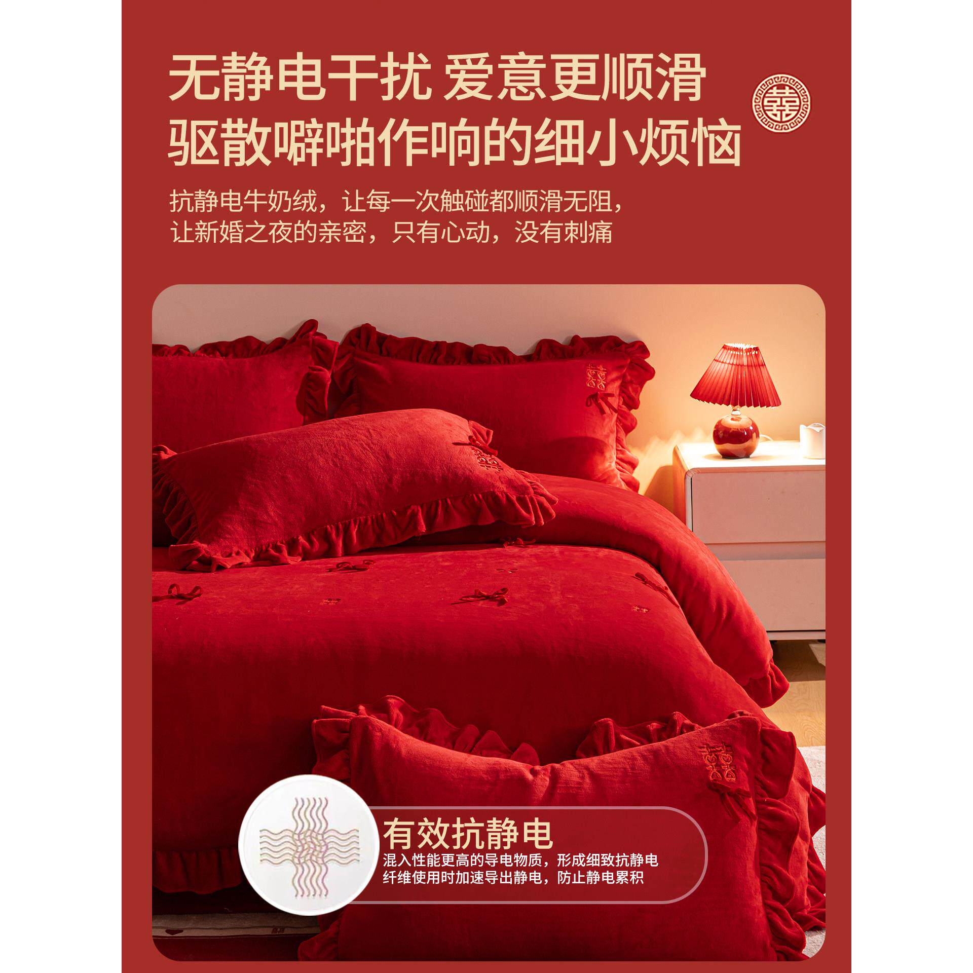 新婚结婚四件套牛奶绒冬季保暖红色婚庆喜被婚嫁床单被套陪嫁床品
