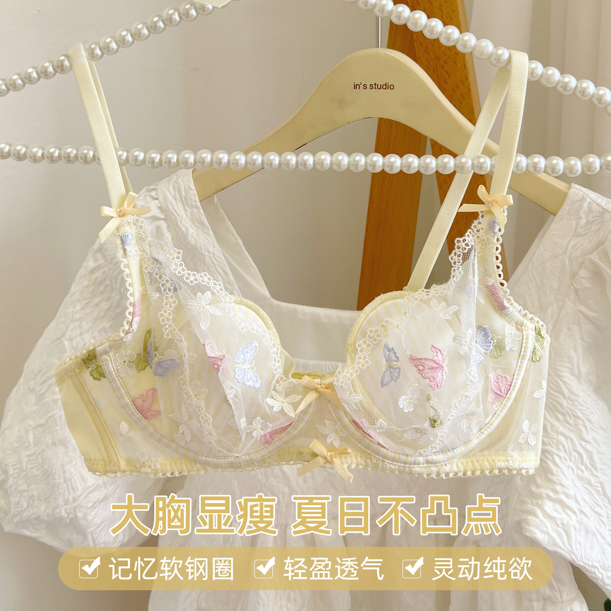 六只兔子法式蕾丝内衣女大胸显小纯欲蝴蝶胸罩性感蕾丝兔耳朵文胸