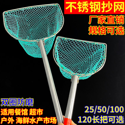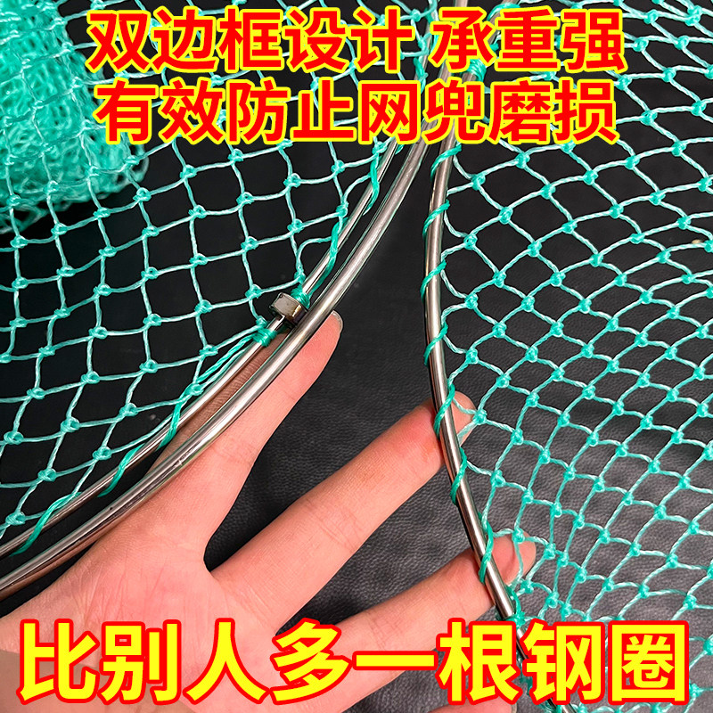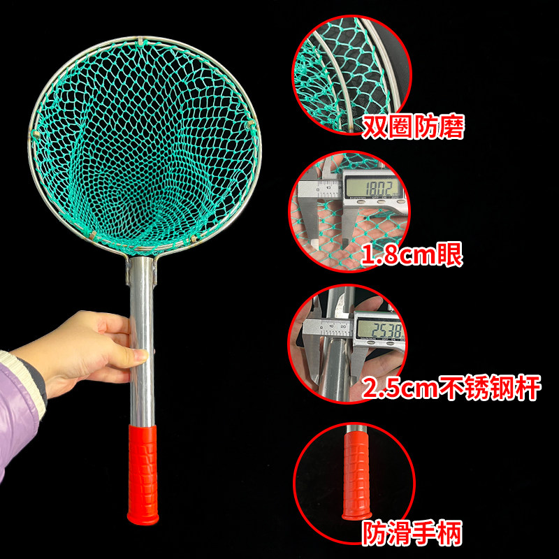 抄网捞鱼不锈钢双圈手工鱼网养殖水产超市饭店赶海渔具捞虾贝类