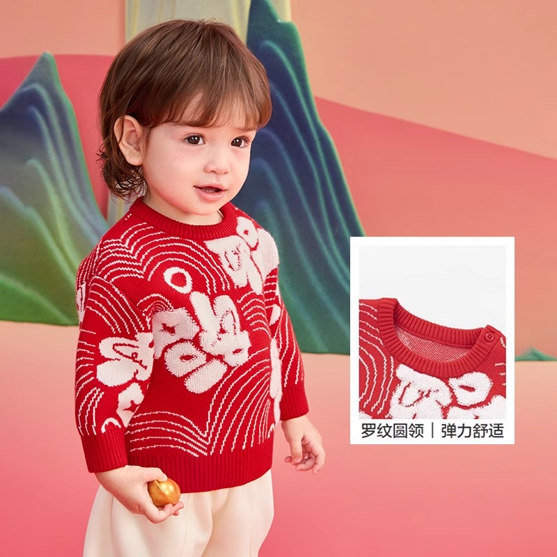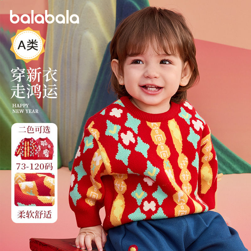 巴拉巴拉男童毛衣宝宝红色套头针织衫女童打底衫儿童毛衫拜年服潮
