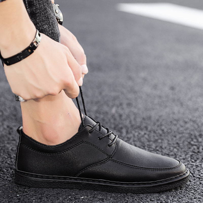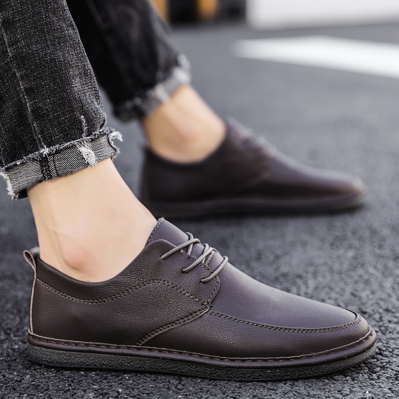 2025秋季新款韩版黑色小皮鞋手工商务休闲鞋男百搭牛筋底透气潮鞋