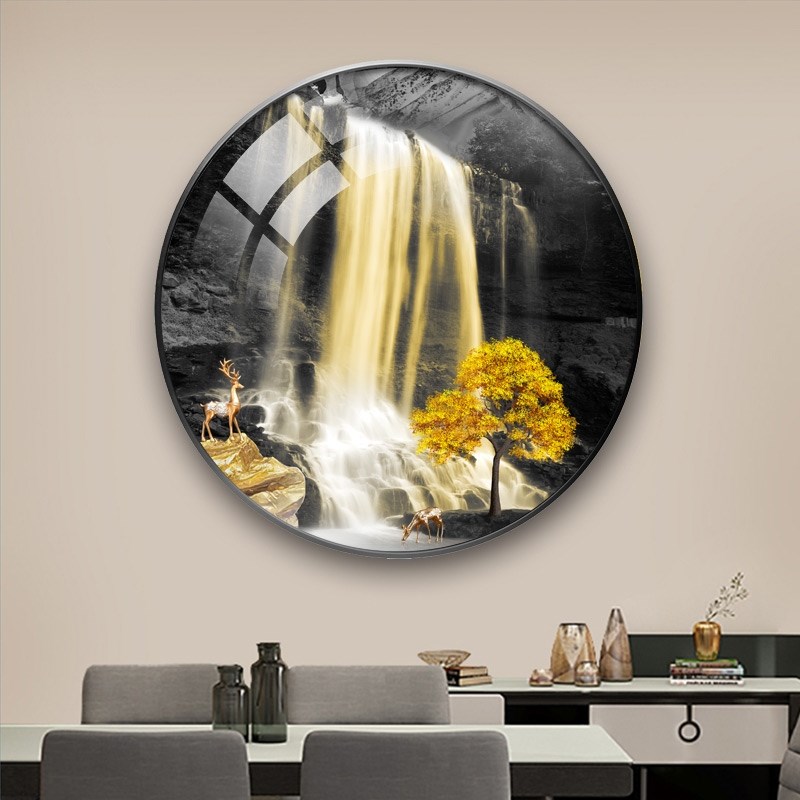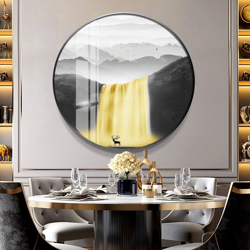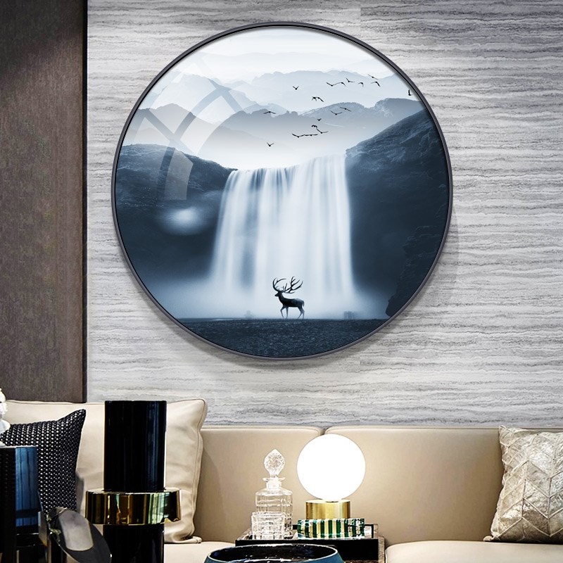 定做圆形装饰画壁画轻奢挂画流水生财客厅背景墙画山水画过道现代