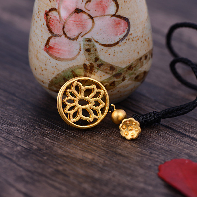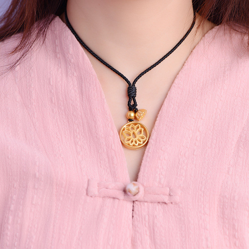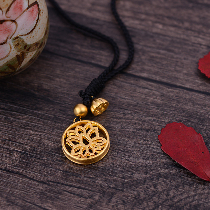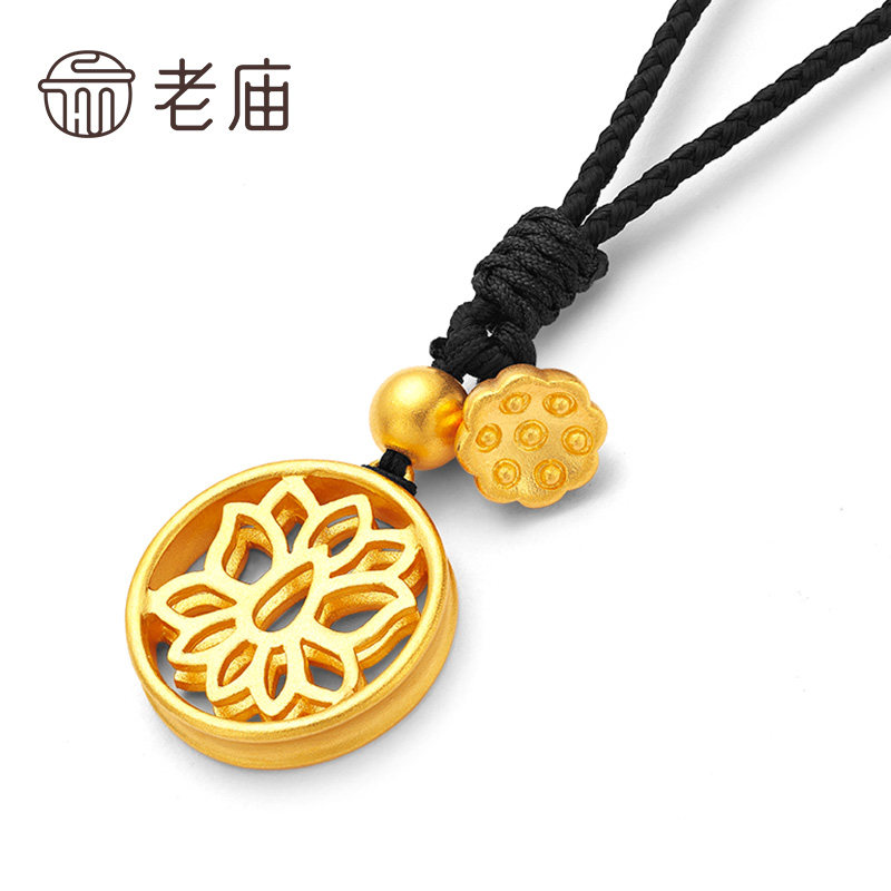 老庙黄金足金吊坠古法金好运莲莲花挂坠颈链女莲蓬坠子计价婚嫁礼