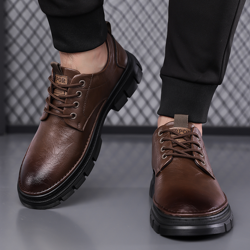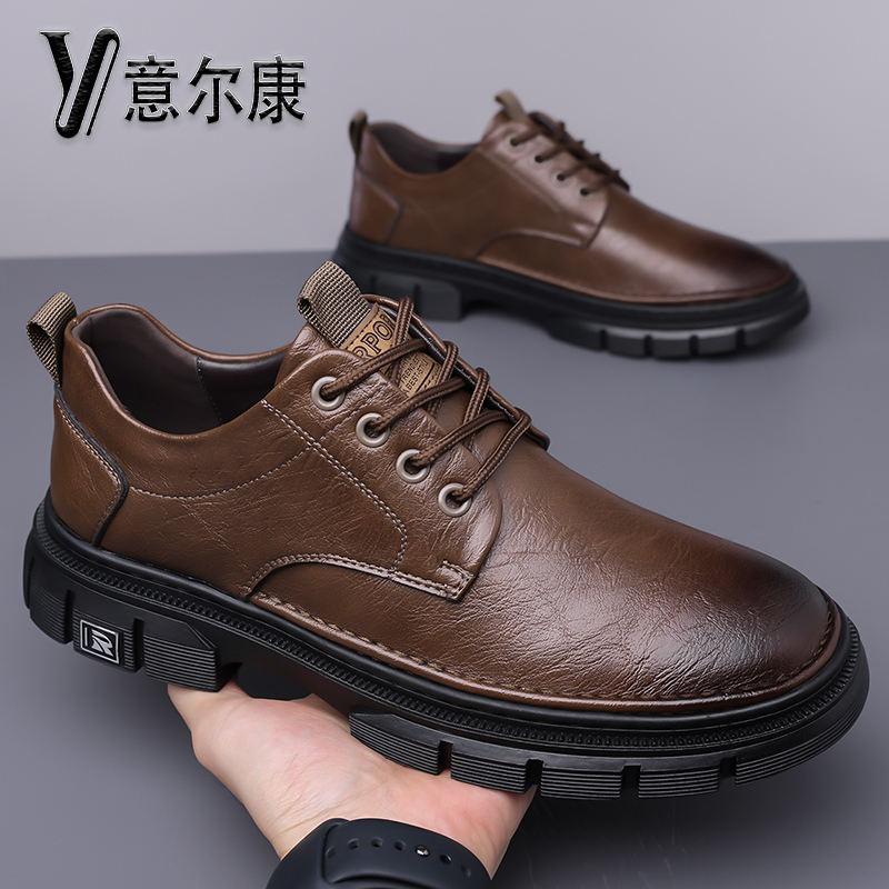意尔康男鞋透气真皮商务休闲鞋防滑户外百搭工装鞋复古低帮马丁靴