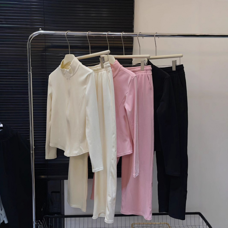 小蛮腰立领显瘦休闲套装女春秋修身上衣阔腿裤运动瑜伽服两件套