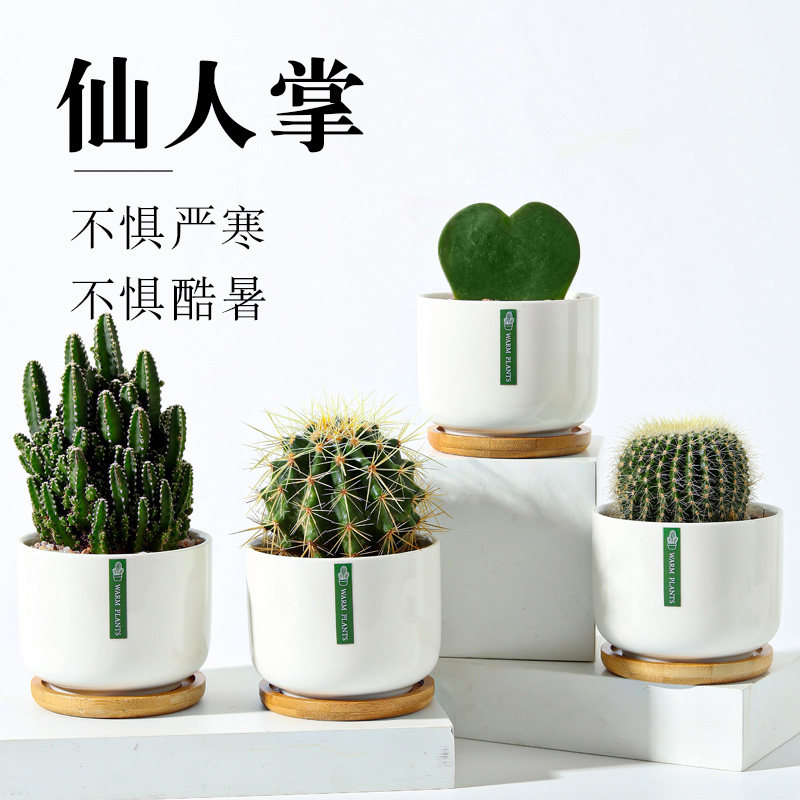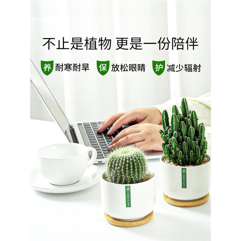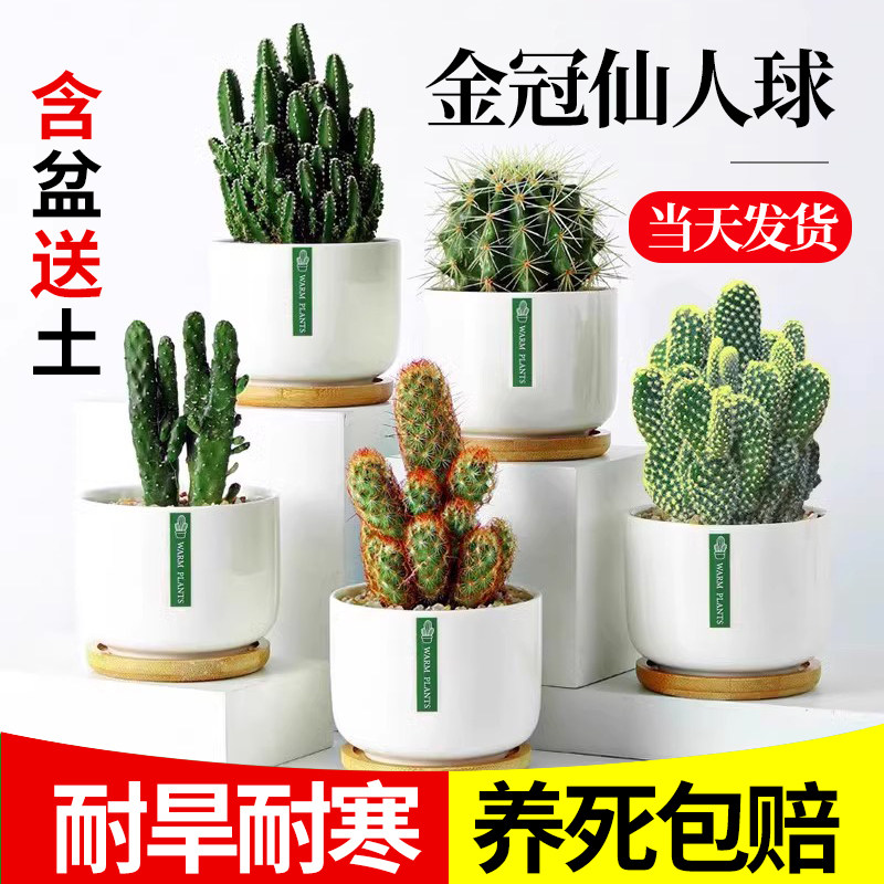 仙人球仙人掌盆栽办公室内防辐射绿植物桌面高端多肉开花摆件金虎