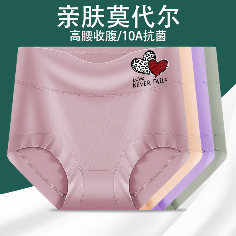 莫代尔女士内裤高腰收腹抗菌纯棉档胖MM大码性感三角短裤透气舒适