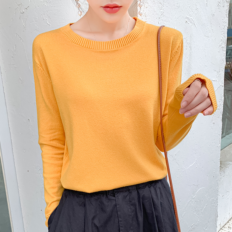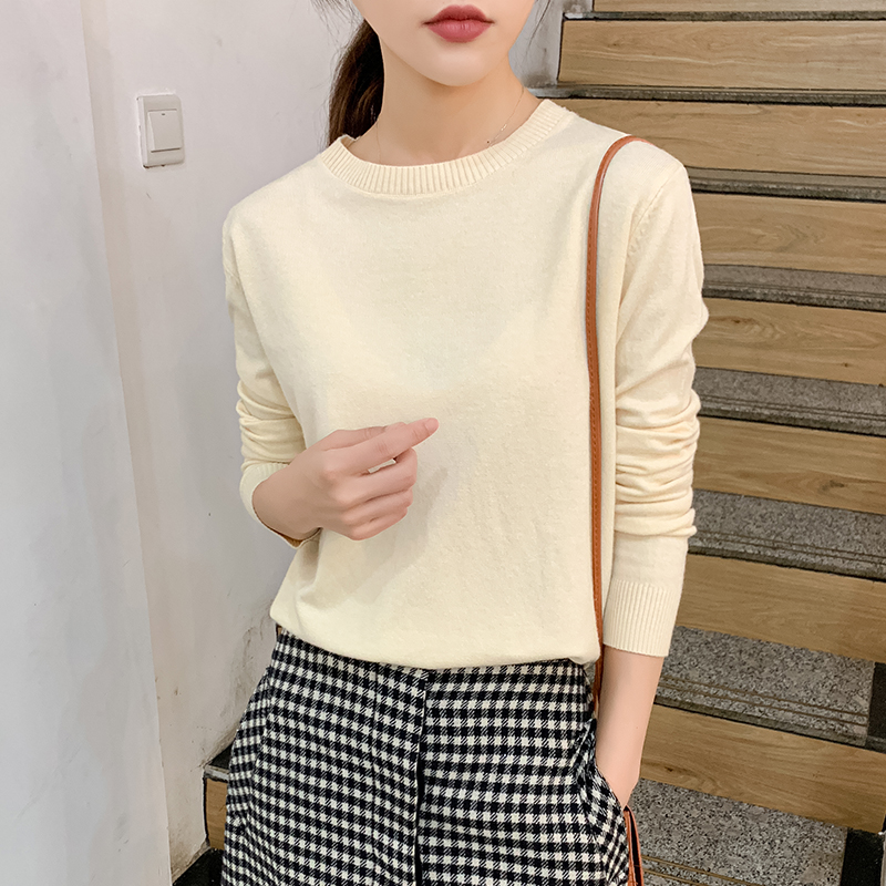秋冬季新款羊绒衫女圆领大码套头韩版宽松百搭低领羊毛打底针织衫