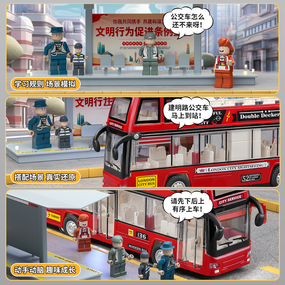 【高度仿真儿童双层巴士玩具】