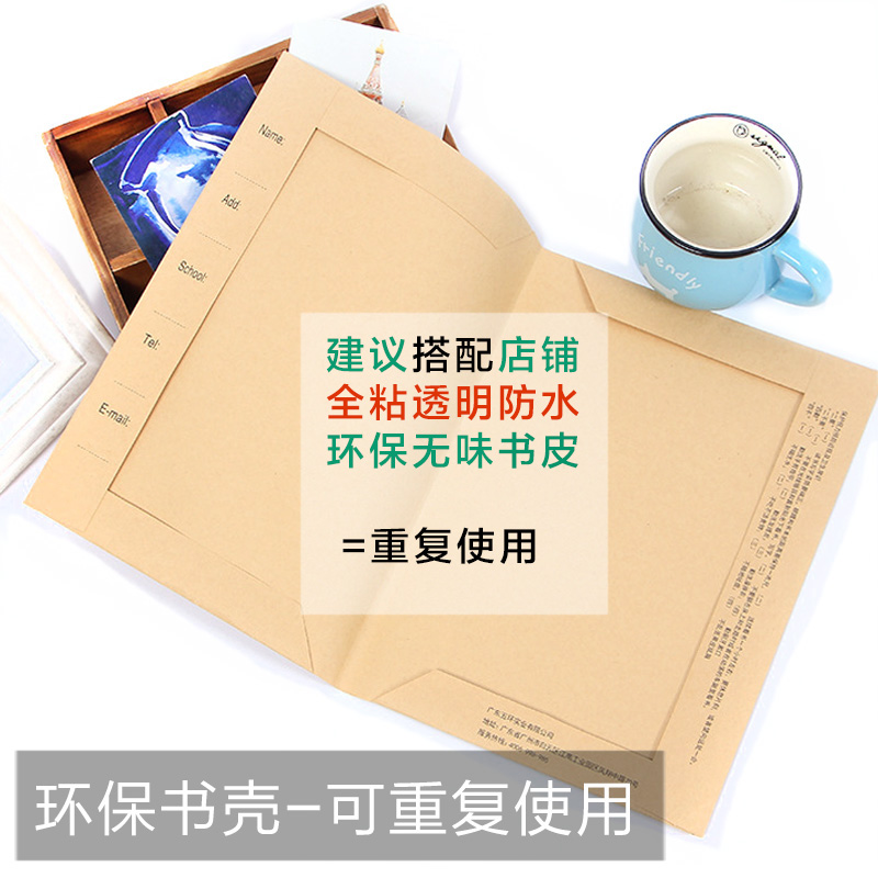 30张学校推荐免裁剪迪斯熊白色牛皮纸B5包书皮书套16k学生25K练习本手工自粘包书皮纸A4书套初高中课本绿色壳