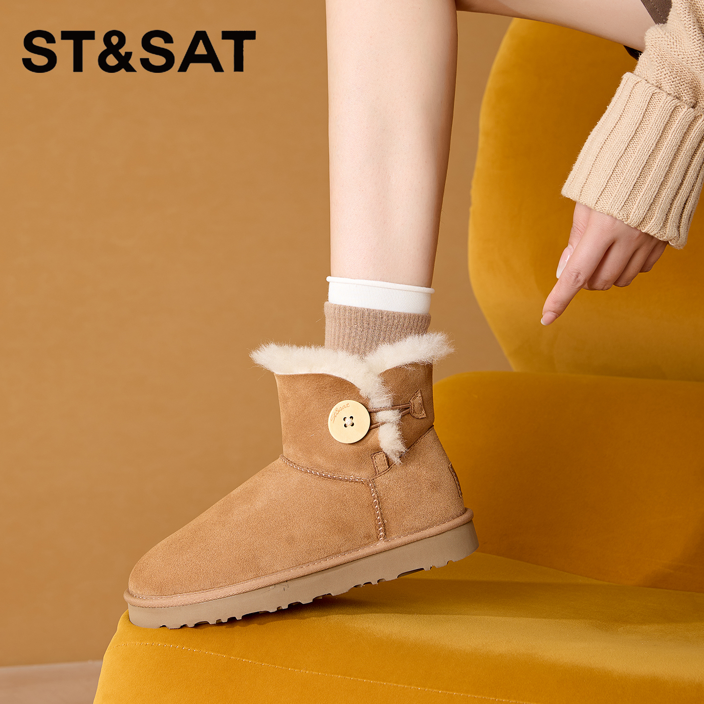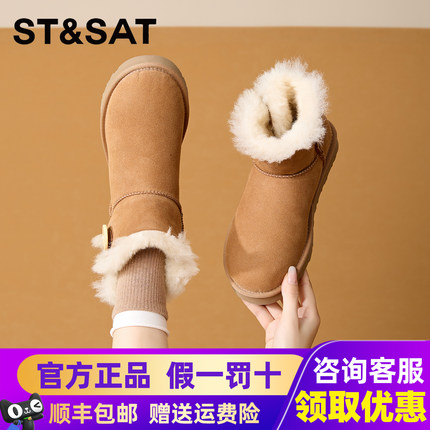 星期六雪地靴女款新款冬季羊皮毛一体加厚保暖棉鞋防滑舒适短靴子