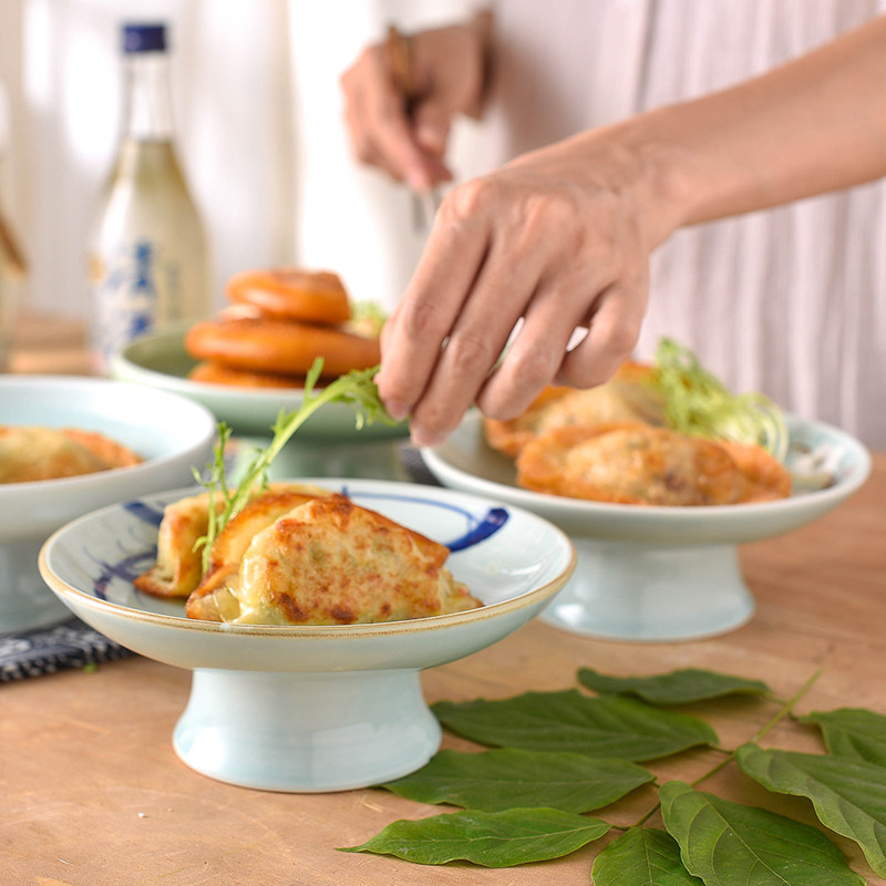 中式陶瓷高脚水果盘颜值糕点心碟佛手盘茶室用干果佛前贡品盘商用
