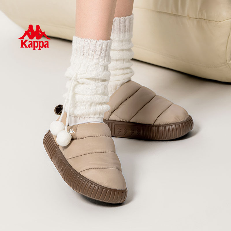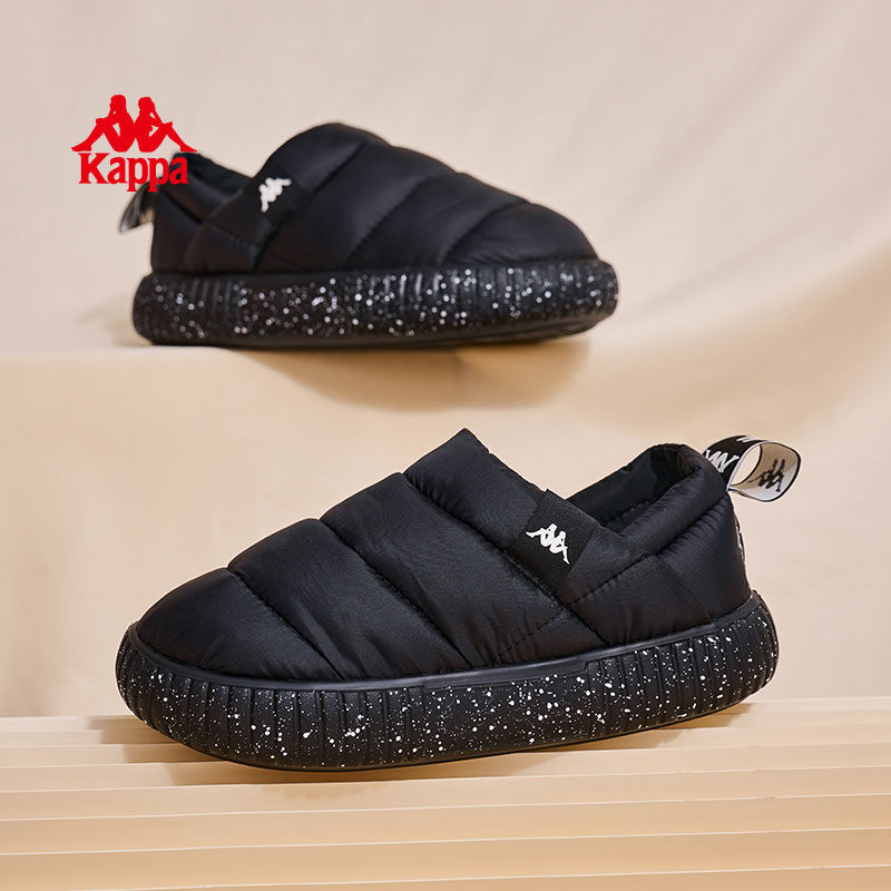 Kappa卡帕棉鞋女2023秋冬新款一脚蹬加绒面包鞋防滑保暖毛毛鞋子
