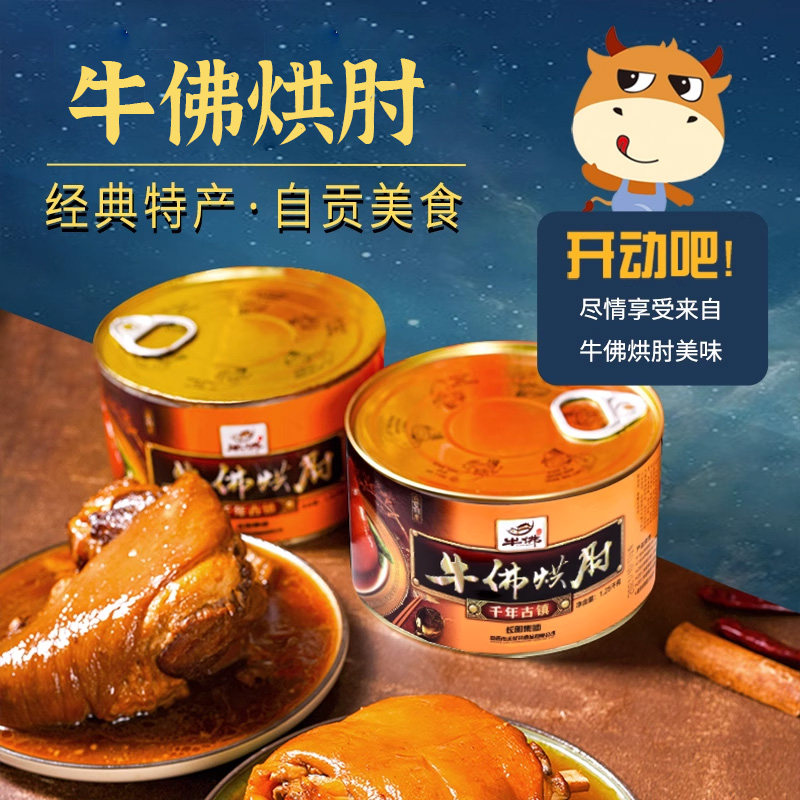 长明正宗牛佛烘肘礼盒四川自贡特产猪肘子卤熟食罐头1250g礼品