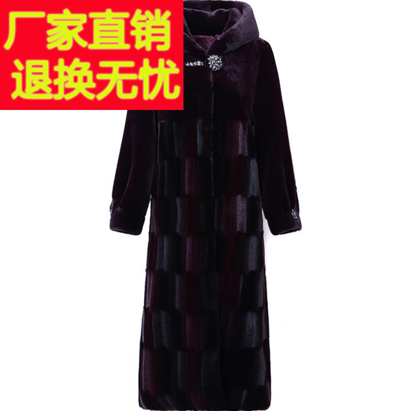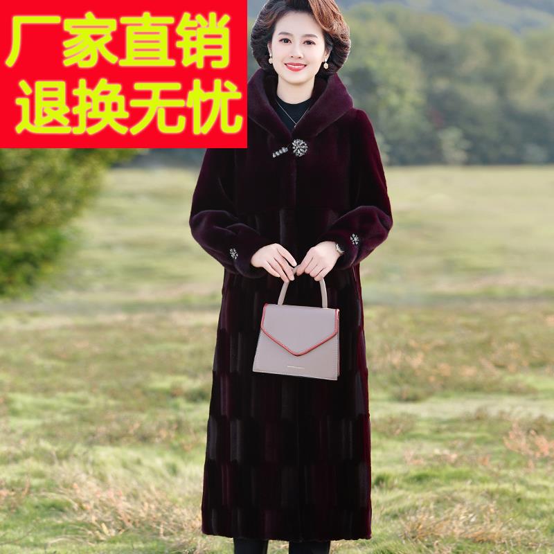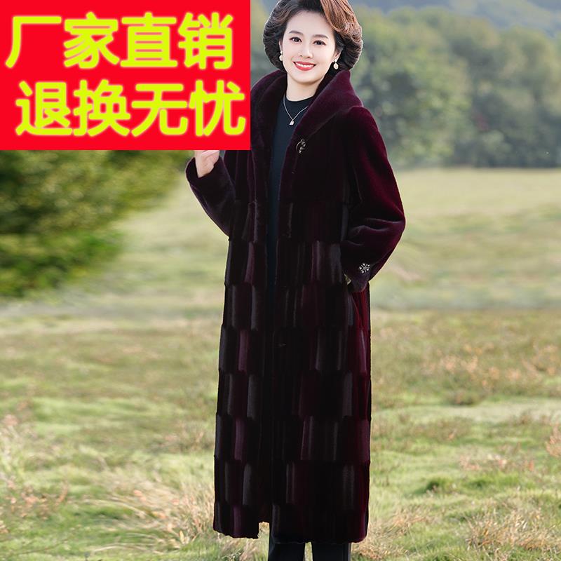 妈妈冬装海宁皮草外套高贵貂绒长款中老年女秋冬连帽皮毛一体大衣