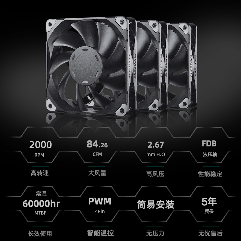 PHANTEKS追风者M25全黑12/14cm温控大风量电脑机箱水冷散热器风扇