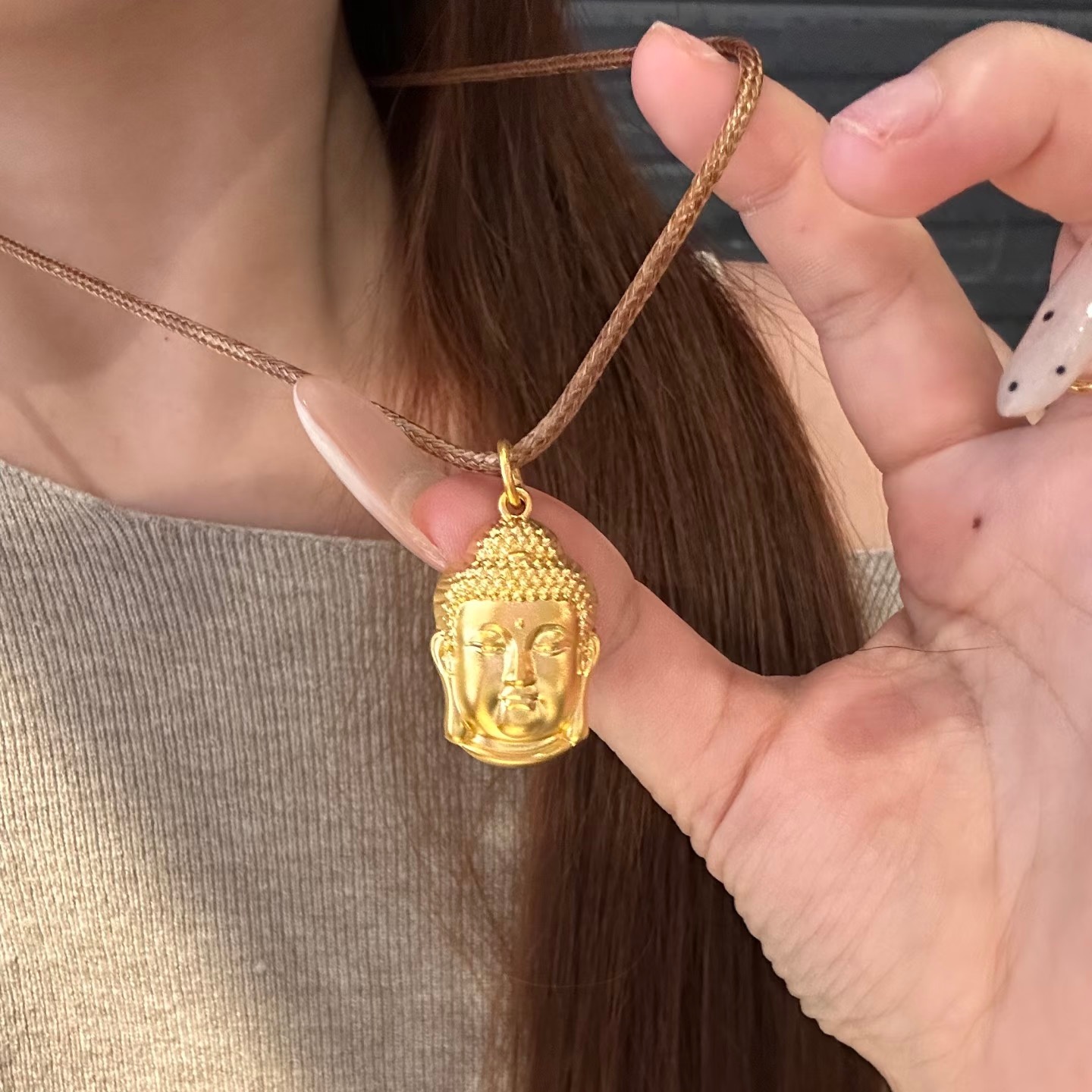 佛头项链吊坠如来佛祖男女款个性挂坠沙金精致百搭编绳项链吊坠