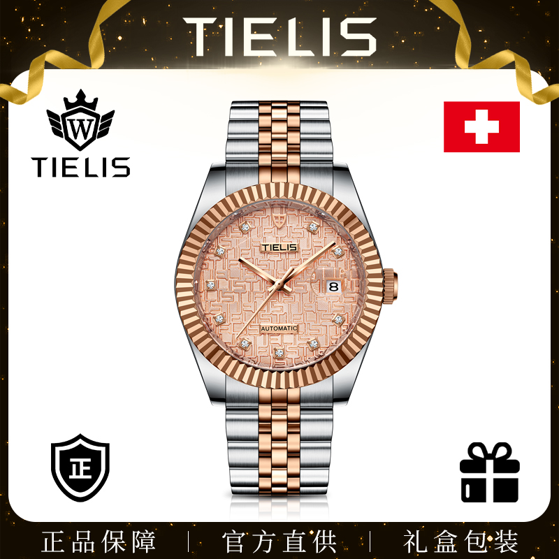 铁利时/TIELIS全自动机械手表渐金日志男士钢带腕表18108-2
