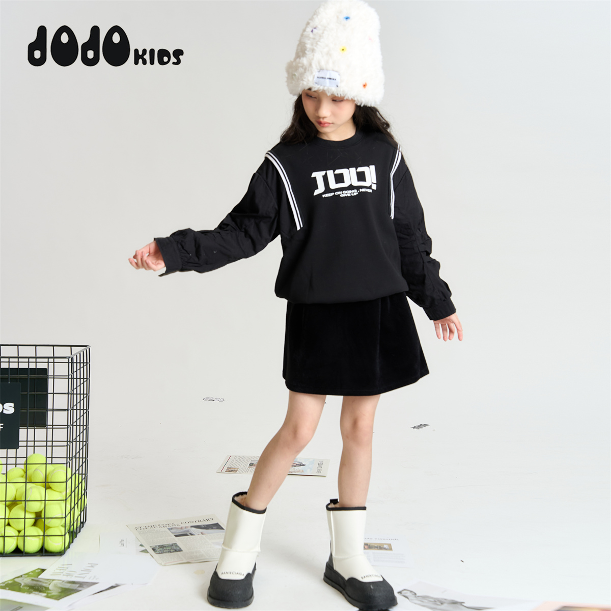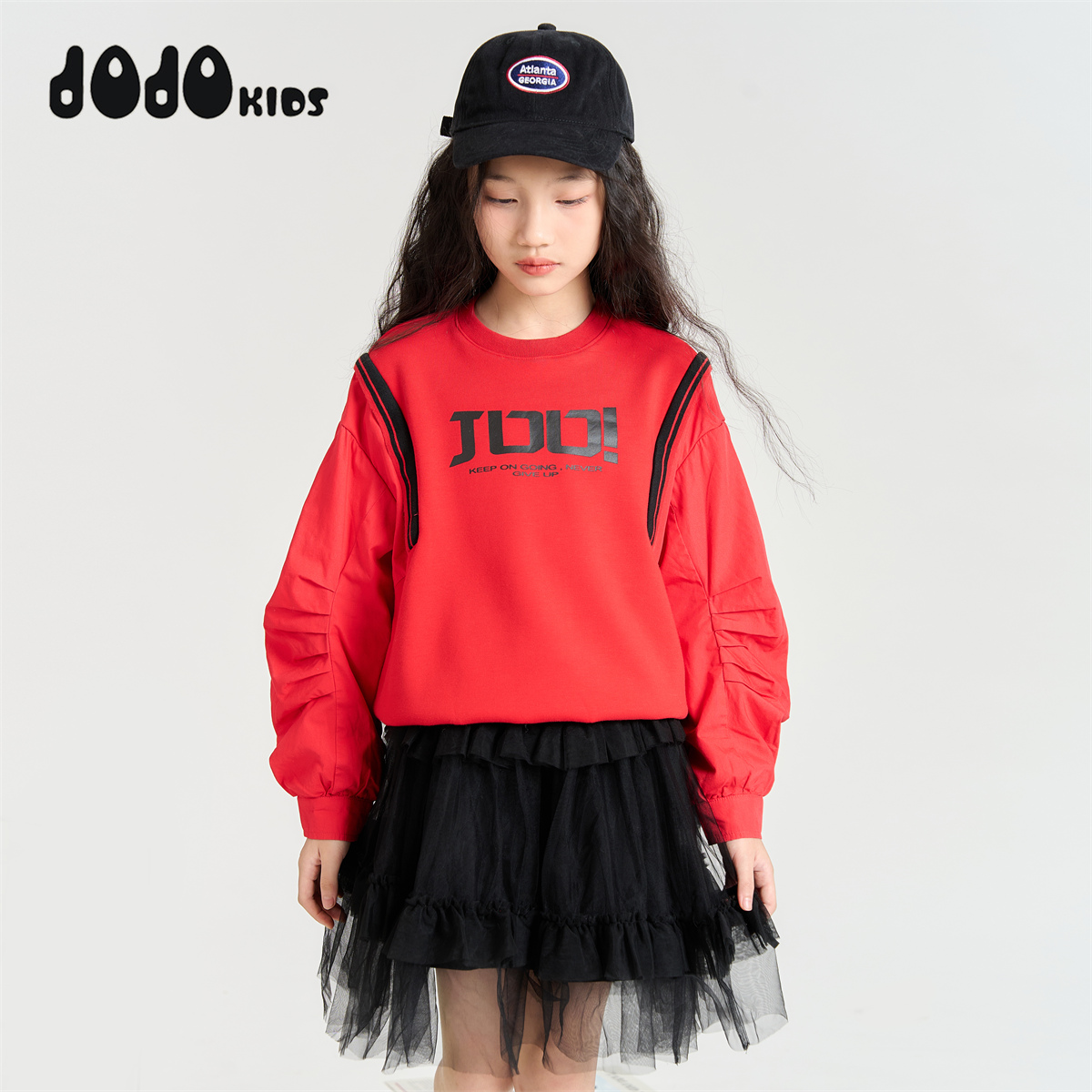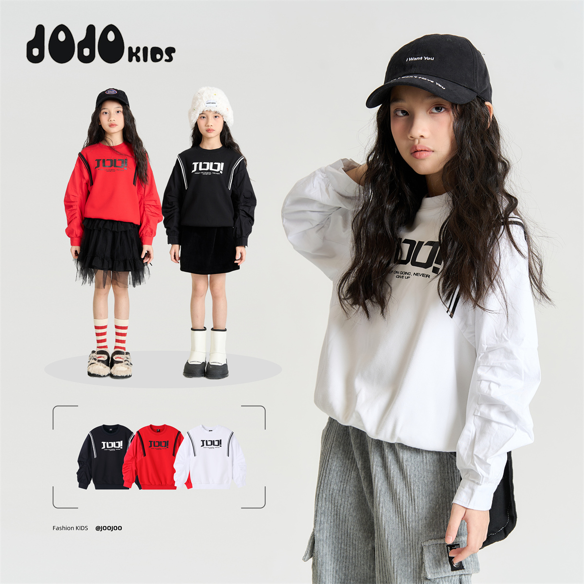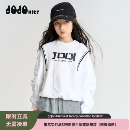 jojo童装女童长袖圆领纯棉卫衣秋季新款宽松套头潮牌洋气加绒上衣