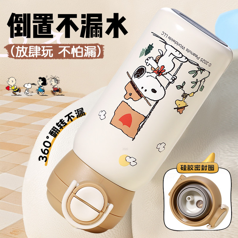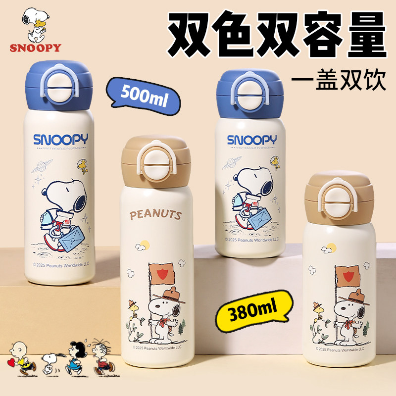 史努比儿童保温杯男孩幼儿园上学专用吸管水杯316食品级直双饮壶