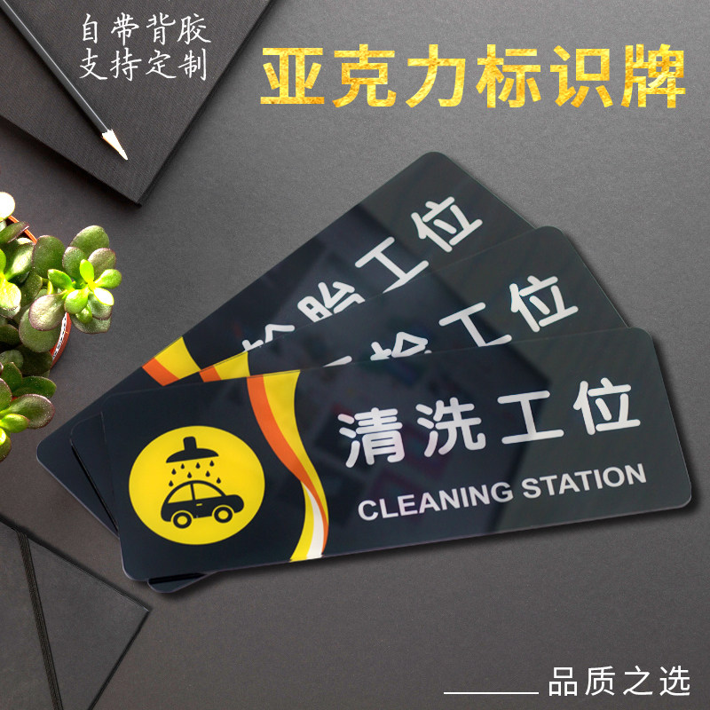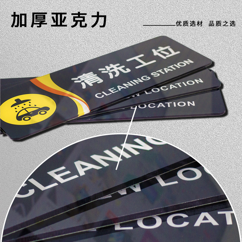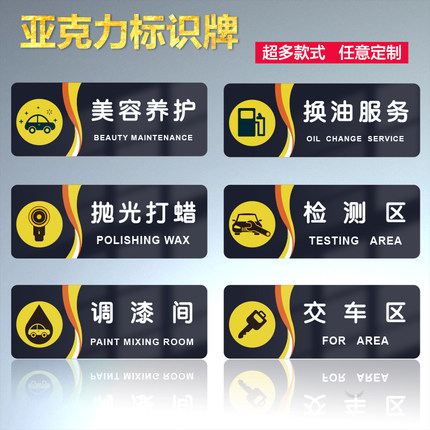 4S汽修店分区亚克力提示牌美容养护换油服务抛光打蜡检测区调漆间交车区标识牌墙贴挂链标牌定制