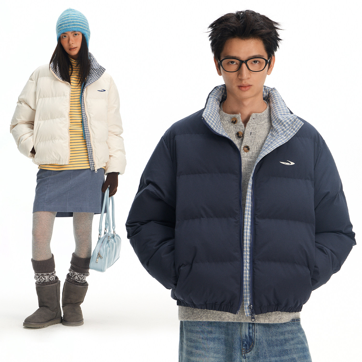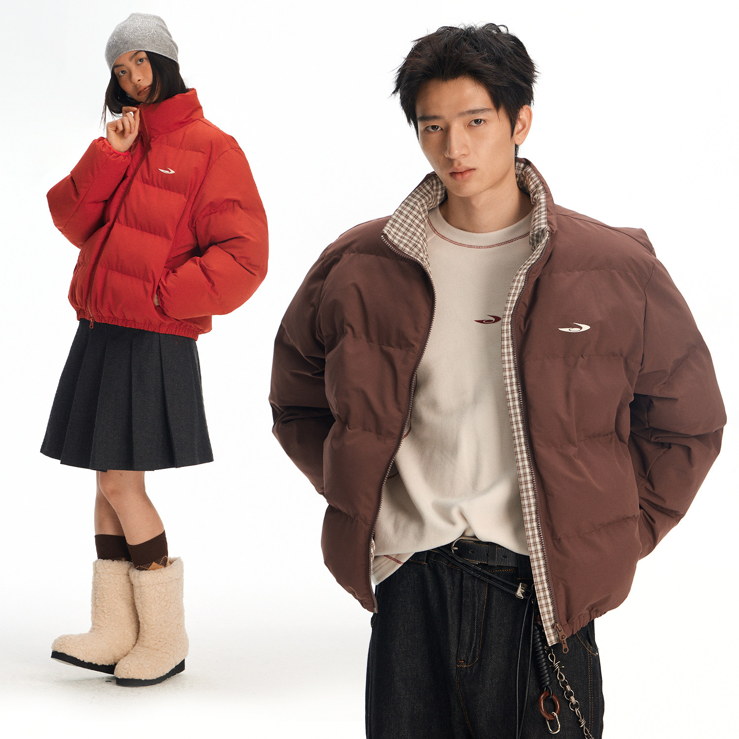 江南先生NewJNXS本命年红色立领拼接格纹加厚棉服面包服外套男女