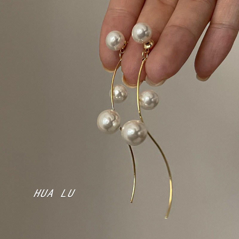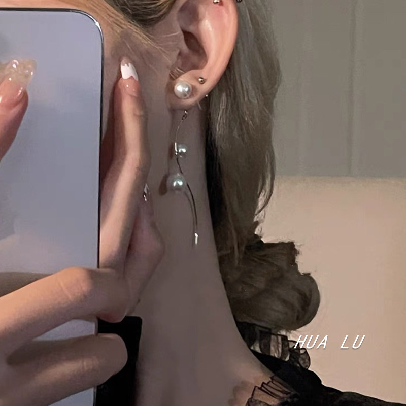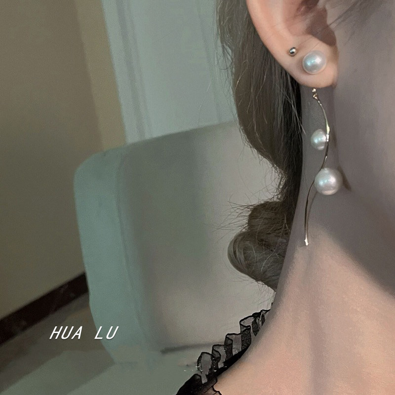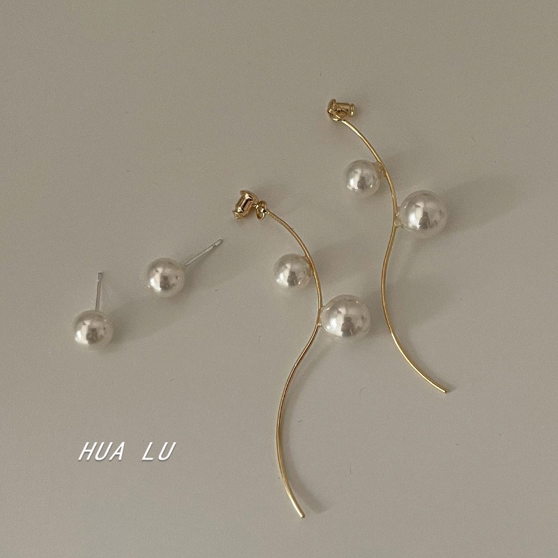 HUALU-午夜巴黎 韩国设计感珍珠长款耳环耳夹轻奢气质高级感耳饰