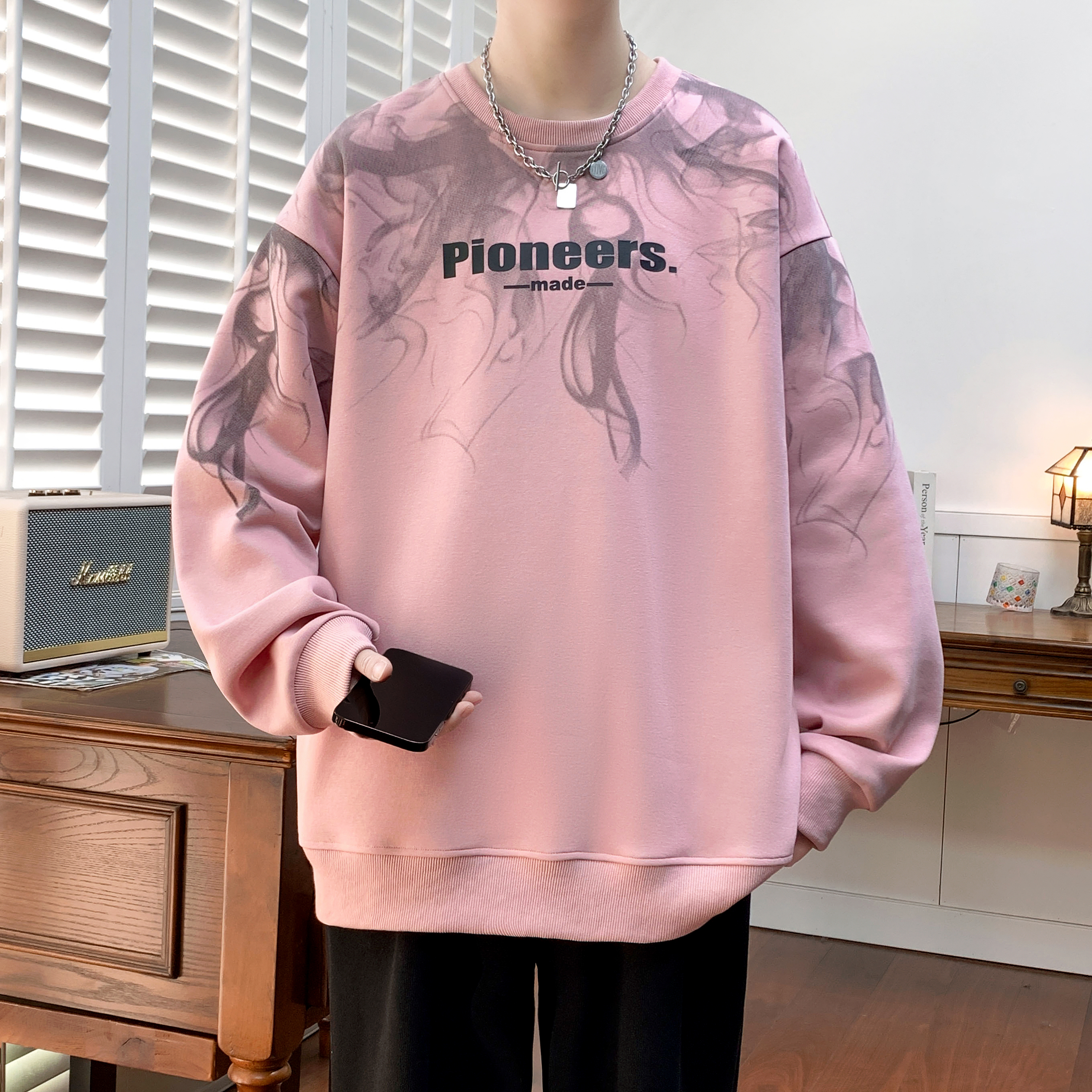 重磅圆领长袖T恤男生春秋季潮牌宽松青少年高初中学生卫衣上衣服