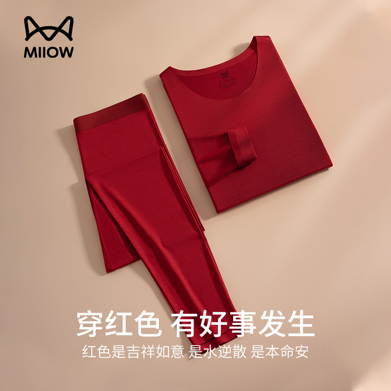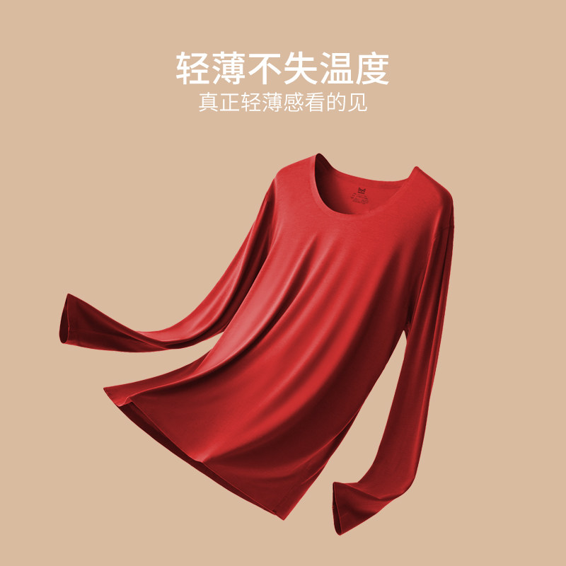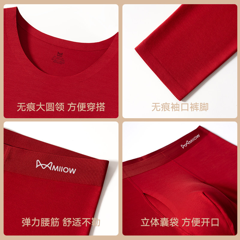 猫人无痕莫代尔男士红色秋衣秋裤马年本命年结婚薄款男款保暖套装