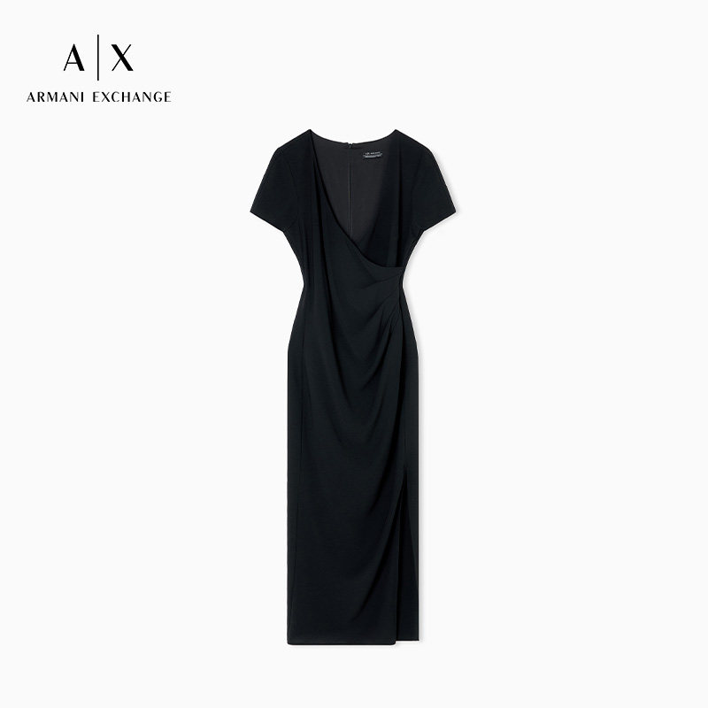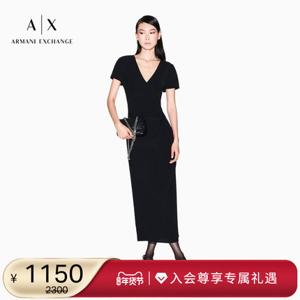 ARMANI EXCHANGE/阿玛尼秋冬新款女士修身V领短袖连衣裙官方