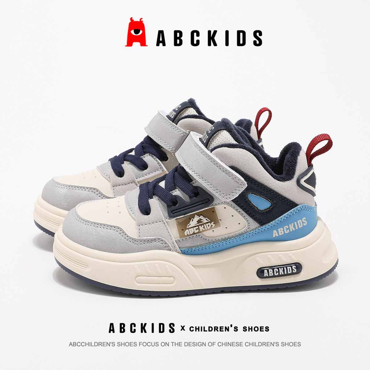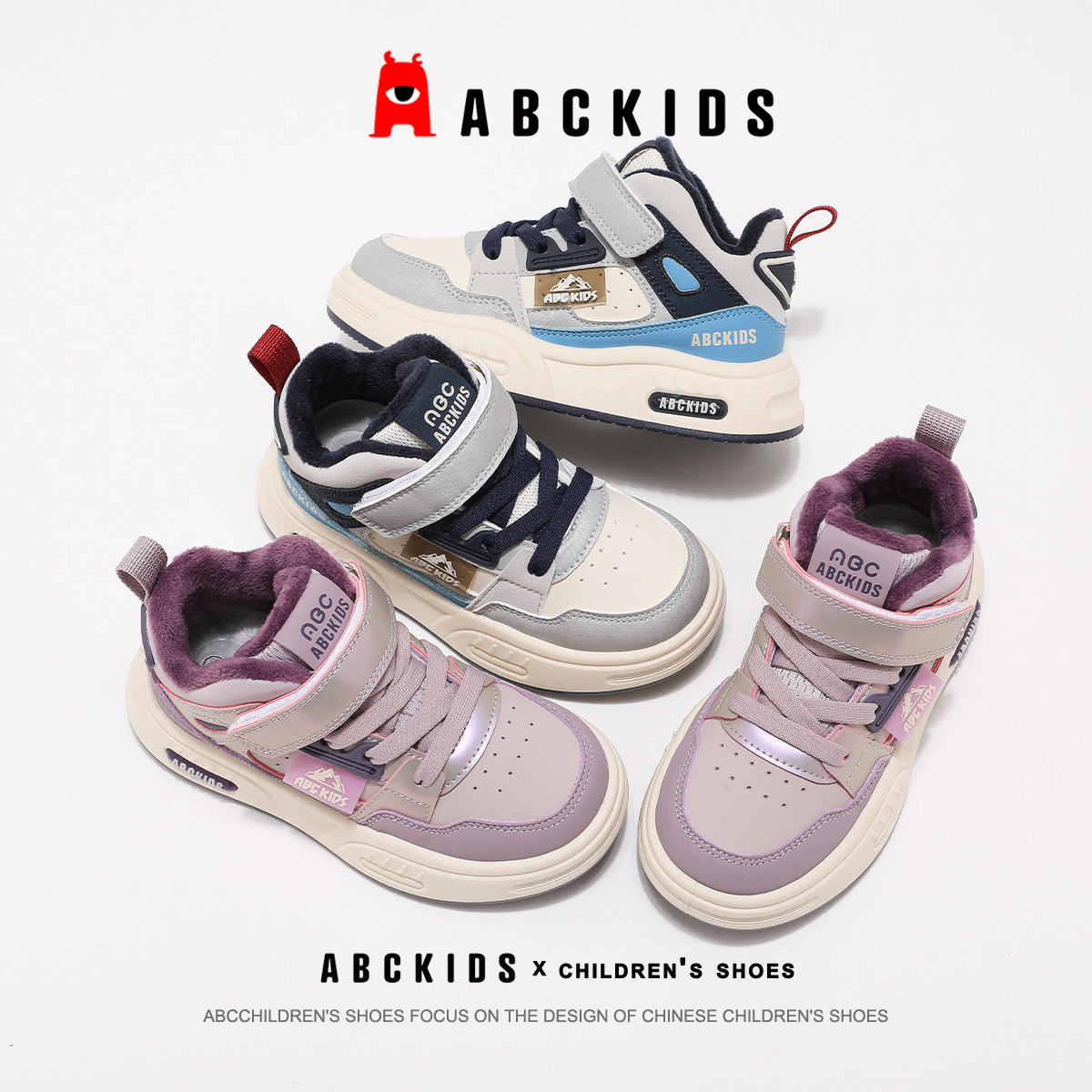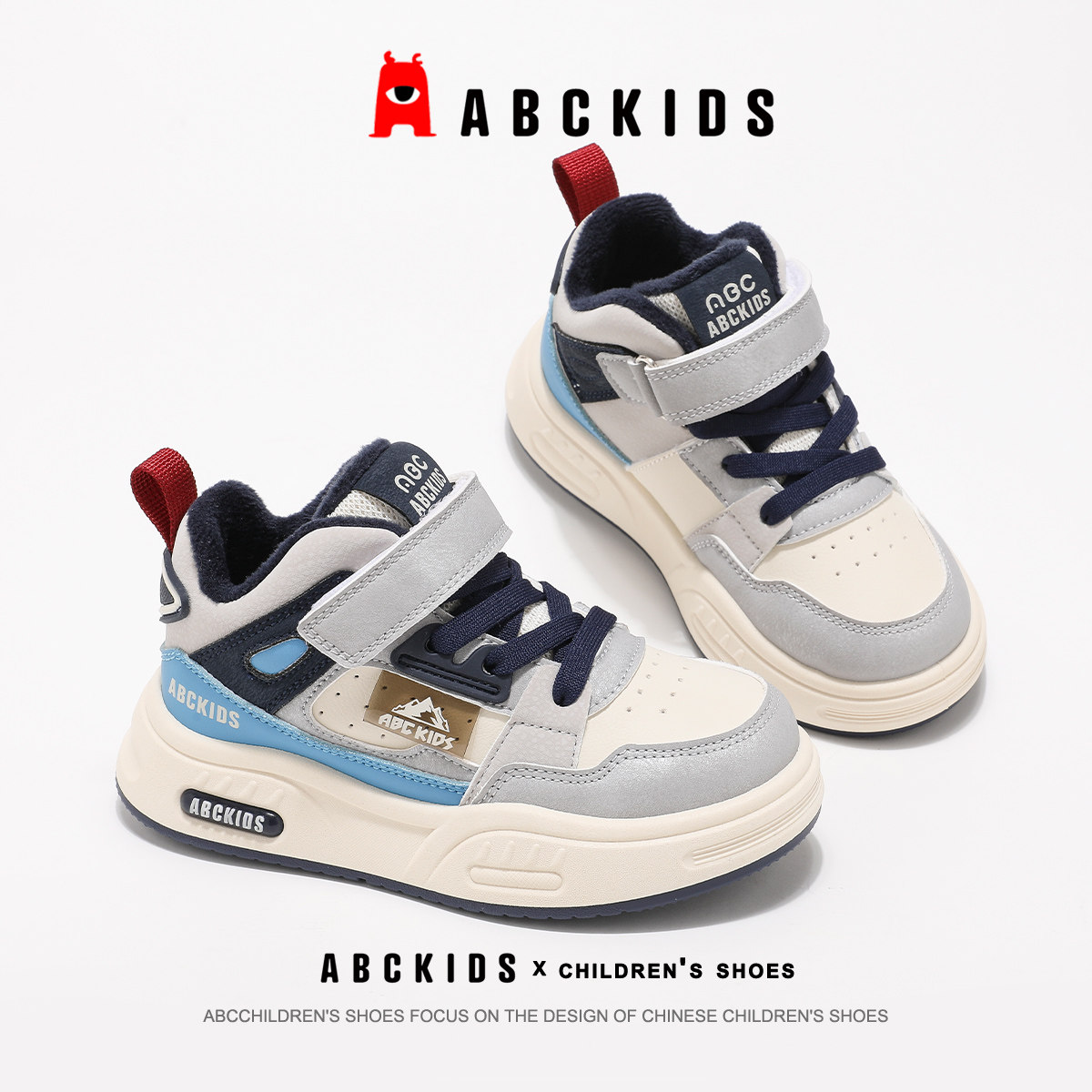 ABCkids童鞋男童加绒板鞋秋冬中大童保暖鞋子冬季儿童运动二棉鞋