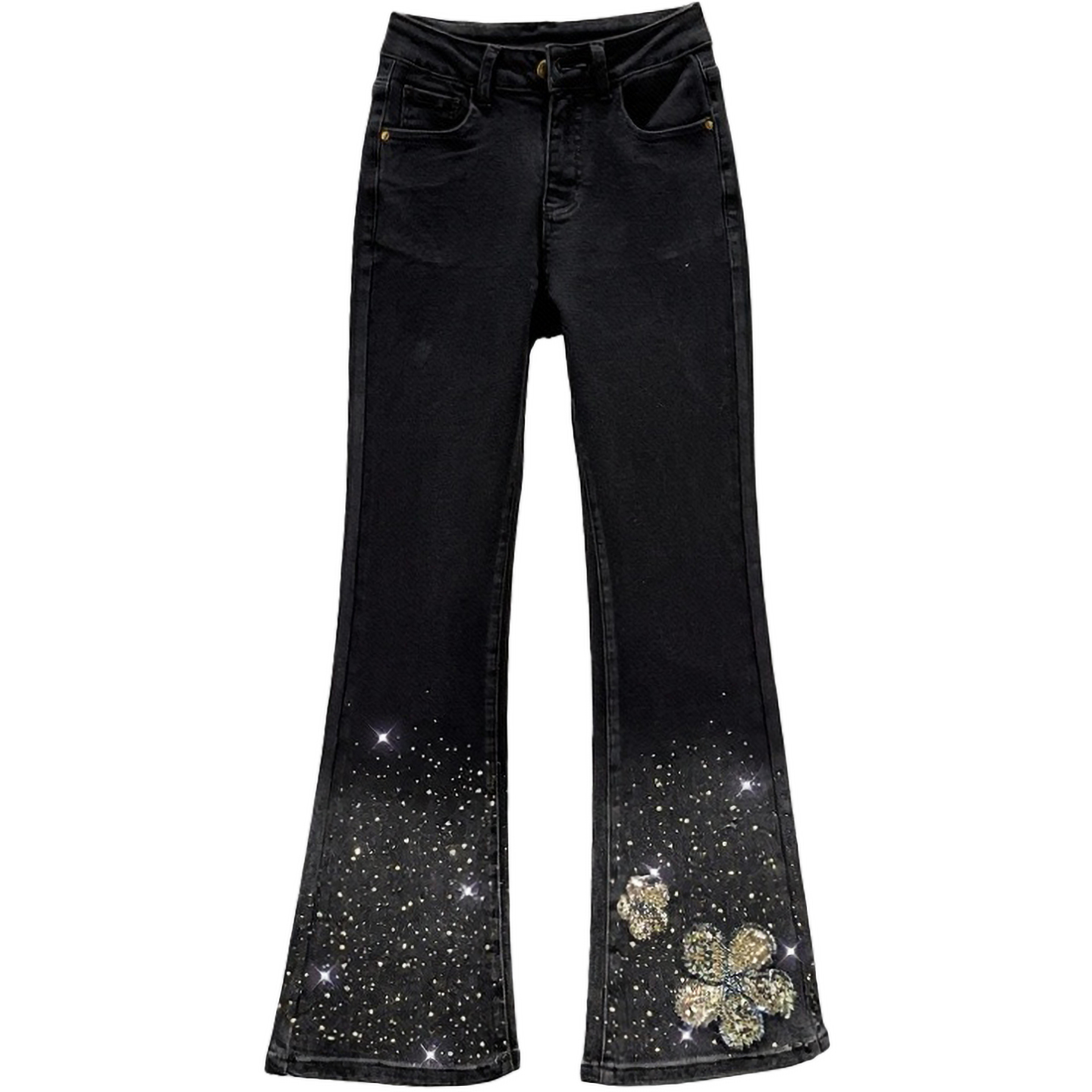 复古牛仔微喇叭裤女2025年秋季新款弹力高腰修身显瘦做旧烫钻长裤
