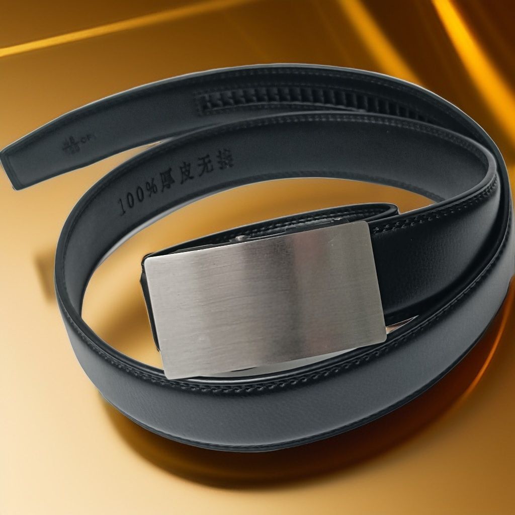 2025新款不锈钢自动扣真皮腰带黑色裤带商务男士加厚牛皮皮带 3.5