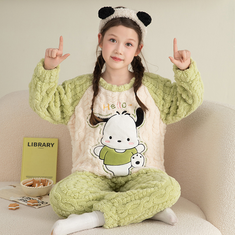 秋冬女童睡衣加厚款法兰绒冬儿童珊瑚绒中大童睡衣女孩加绒家居服